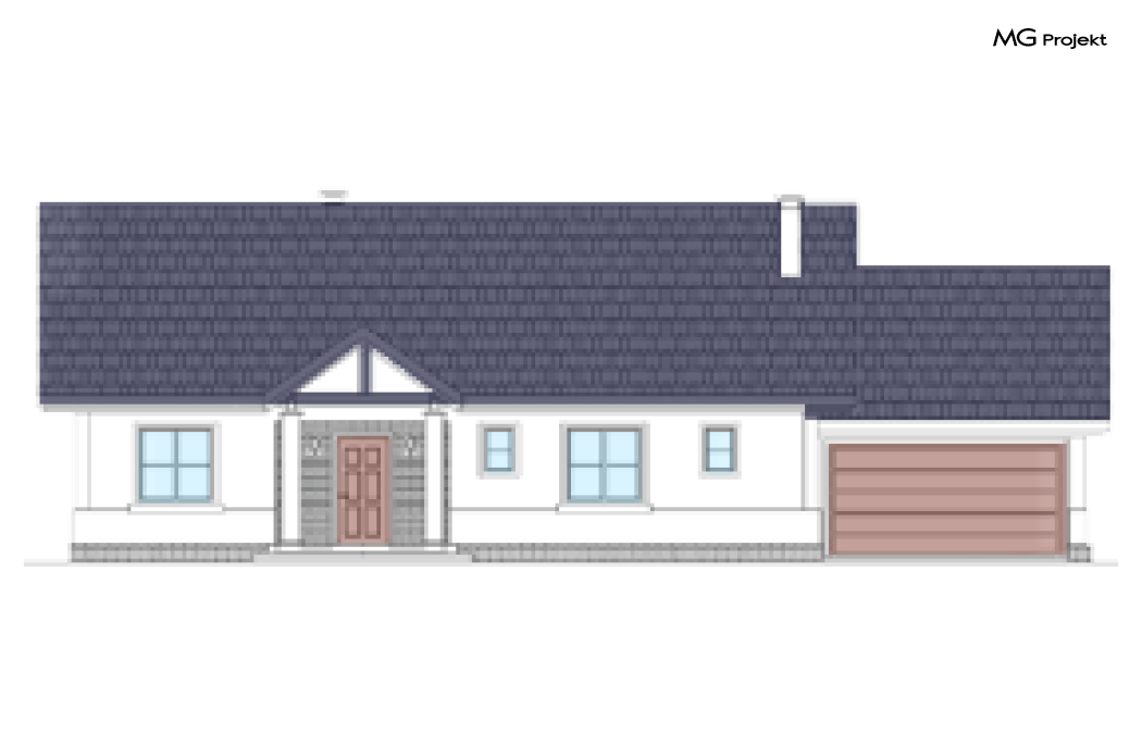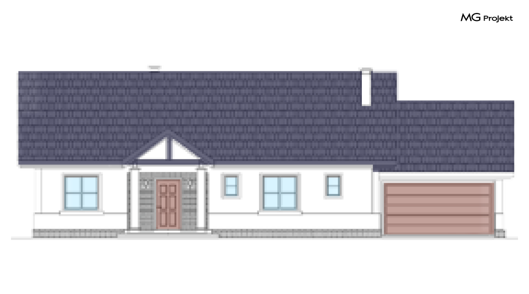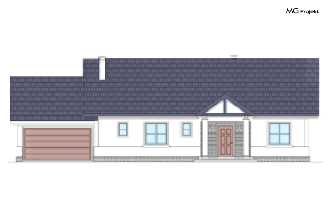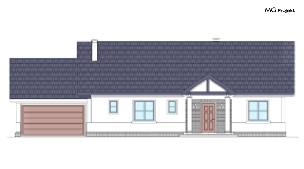 Wariant domku ze zmienionym kątem nachylenia dachu na 35 stopni i z dwustanowiskowym garażem oraz stropem monolitycznym nad parterem.