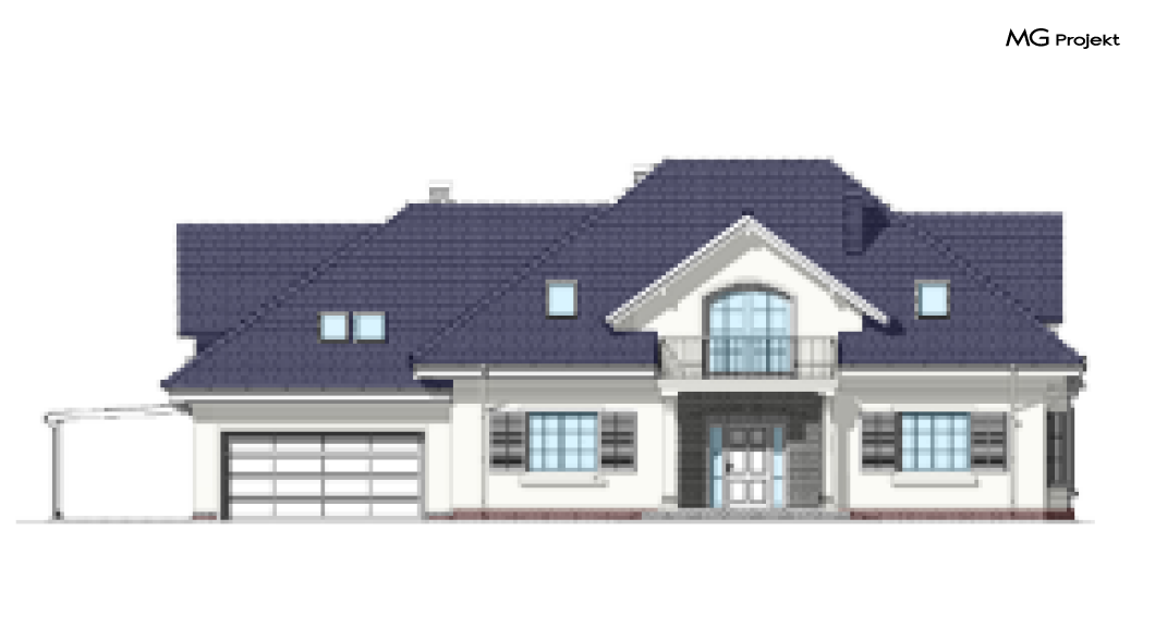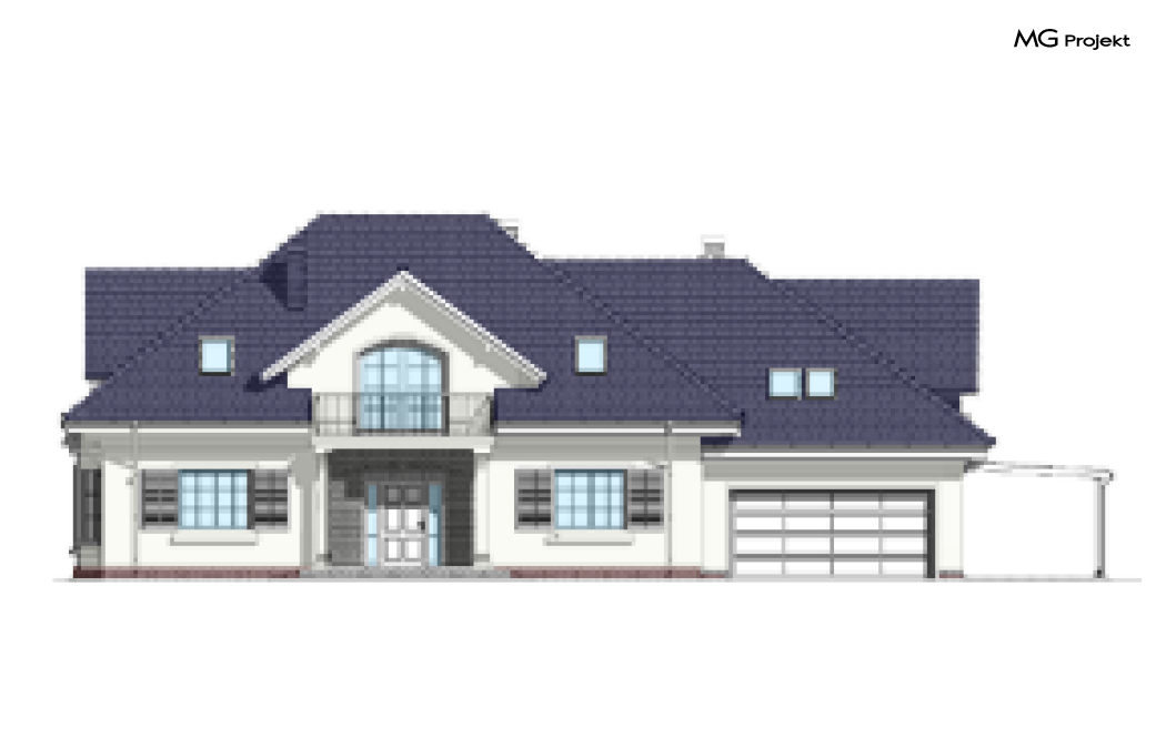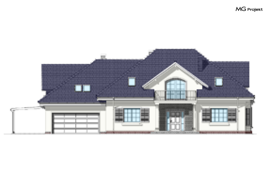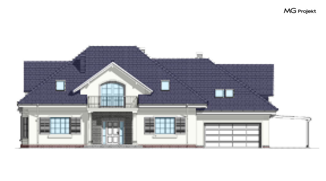 Wariant projektu klasycznego Benedykta 5. Powiększono garaż i pom. gospodarcze za garażem. Dodatkowe okno w garażu, likwidacja okna w kuchni. Nad garażem duża lukarna i jedno scalone pomieszczenie. Podniesiono strop w garażu o 20 cm. Lukarna w elewacji tylnej nadproże łukowe. Dodano drewniana wiata z boku garażu. Zapraszamy do zapoznania się z pełną ofertą pracowni MG Projekt: projekt domu Benedykt, projekt domu Benedykt 2, projekt domu Benedykt 3, projekt domu Benedykt 4, projekt domu Benedykt 5, projekt domu Benedykt Bliźniak.