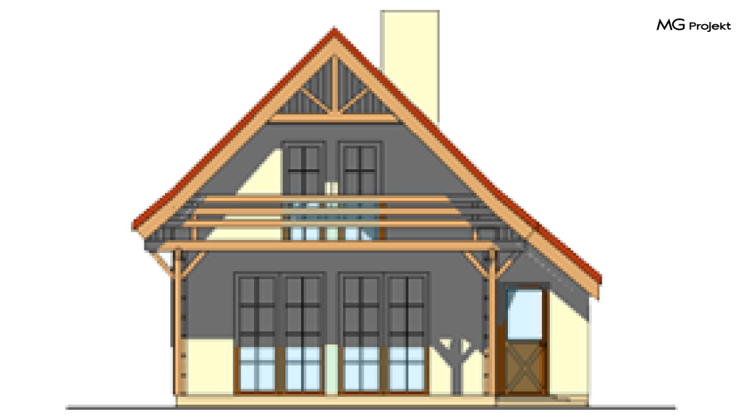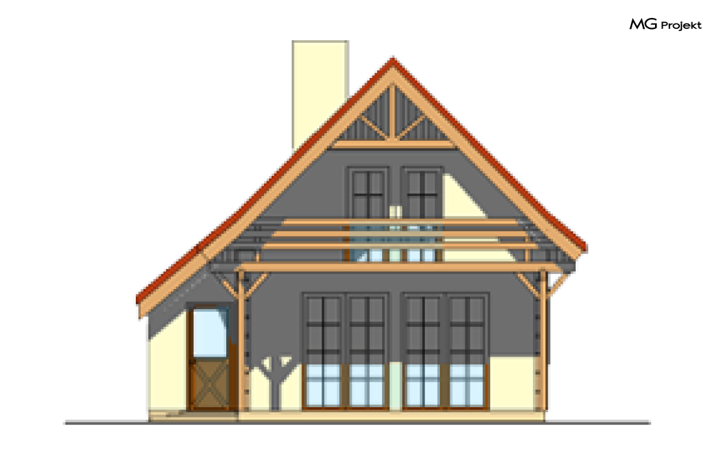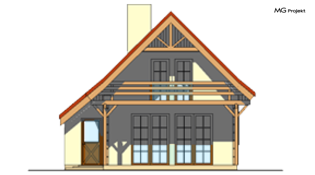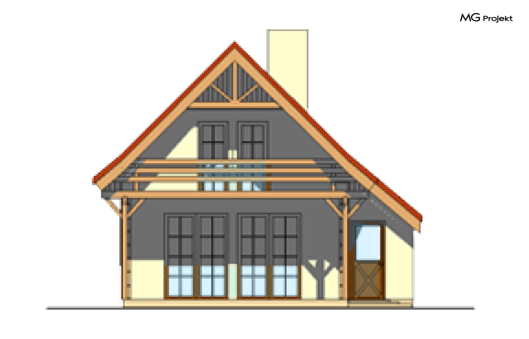 Wariant z dachem o łagodniejszym kącie nachylenia (45 stopni) oraz z powiększonym przedsionkiem.