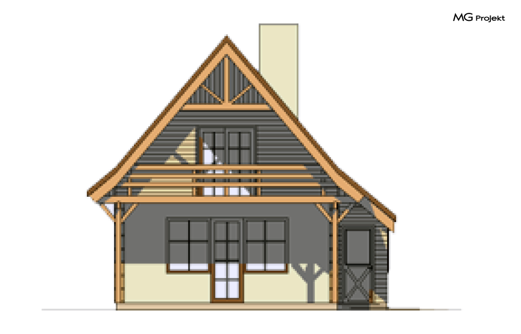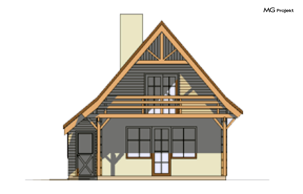 Wariant z mniejszym przeszkleniem z salonu na taras.