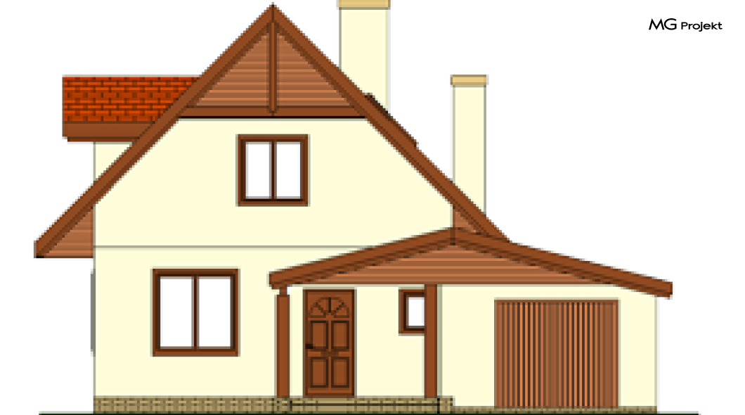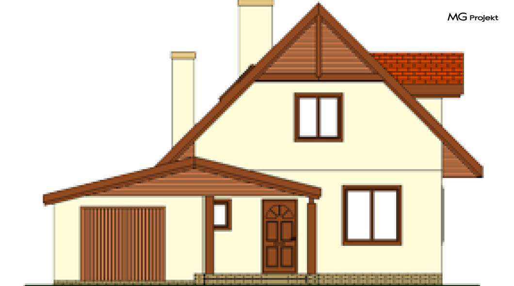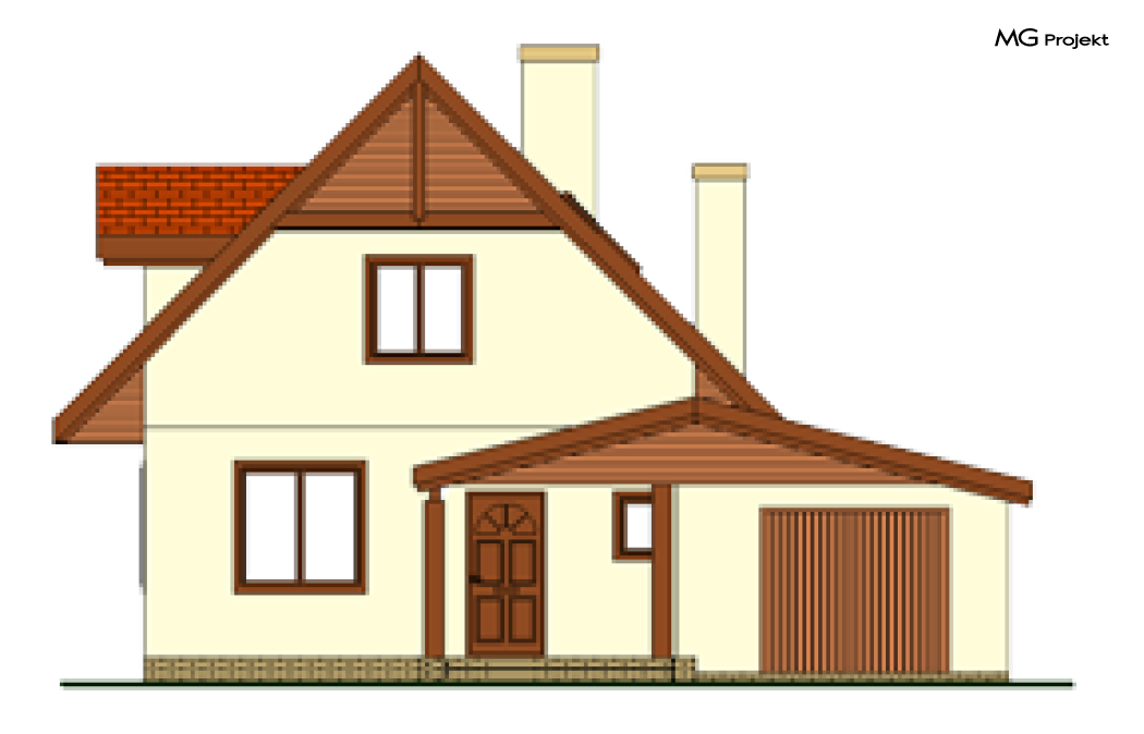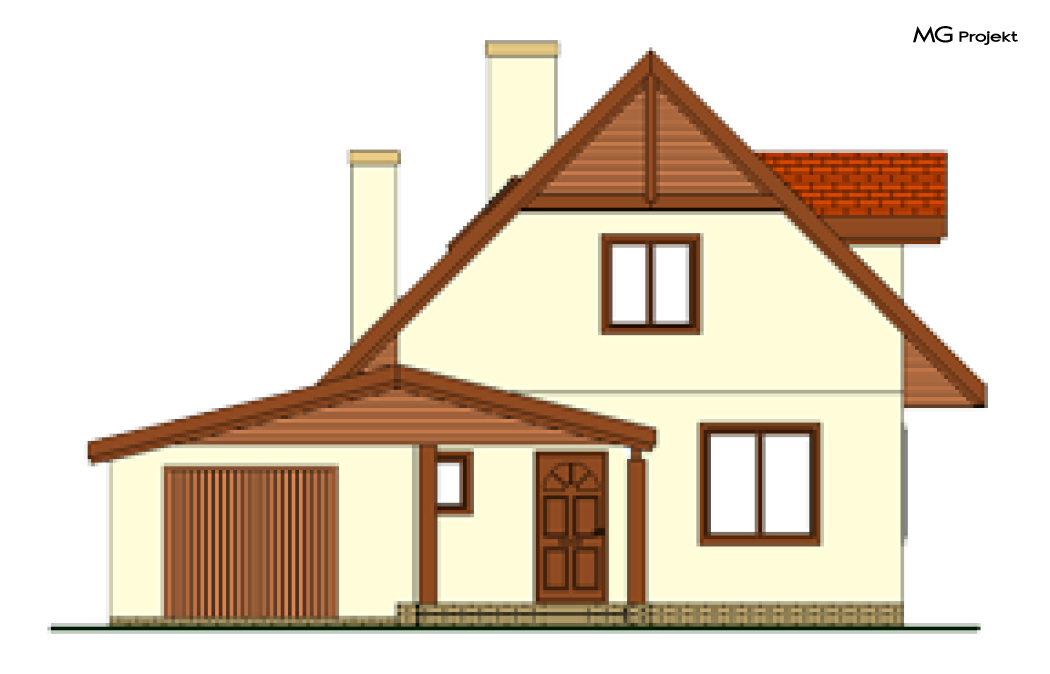 Wariant z garażem i pomieszczeniem gospodarczym, oraz z lukarnami w dachu .