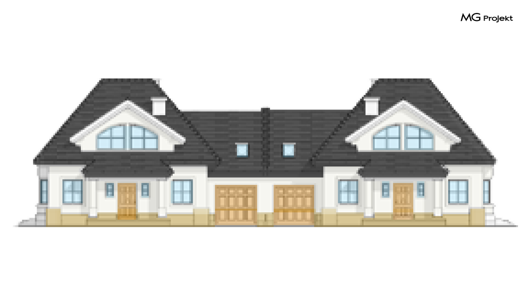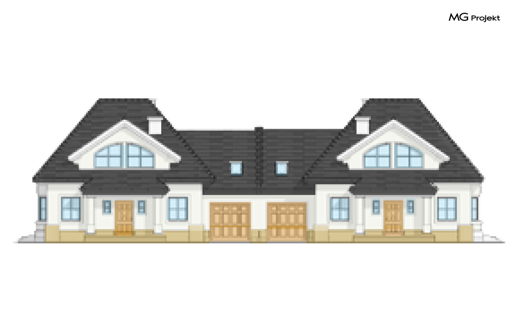 Wariant ze zmienioną elewacją ogrodową . Dane dotyczą połowy bliźniaka .