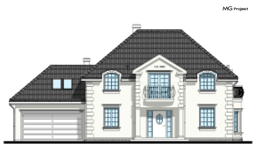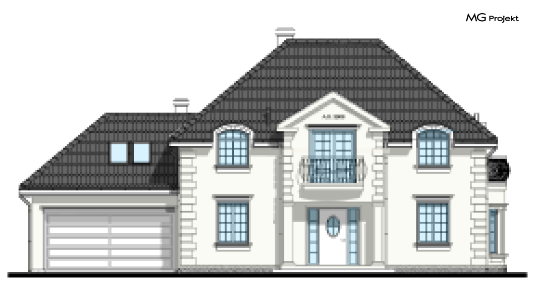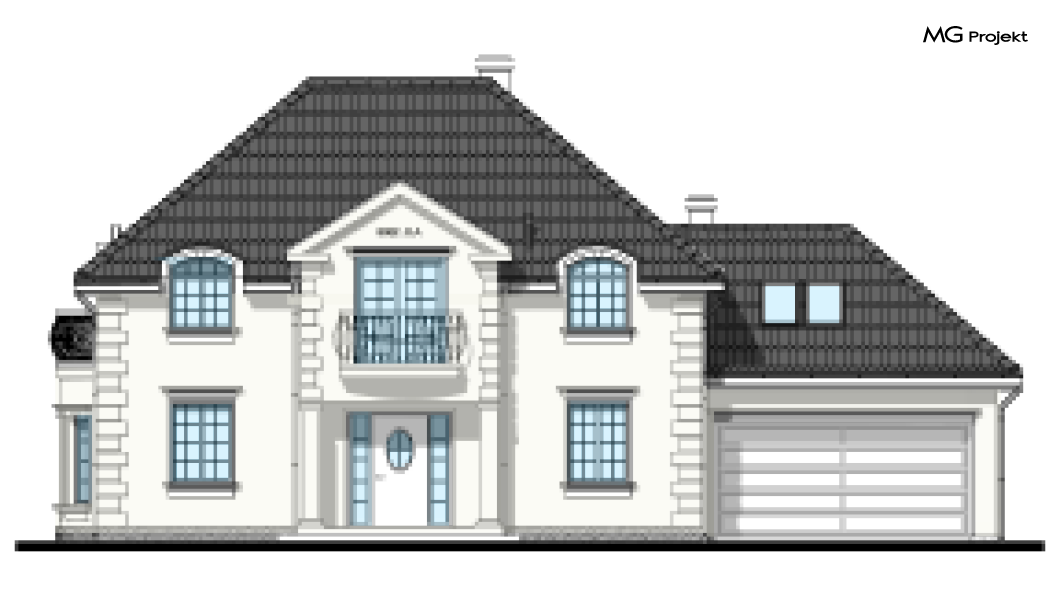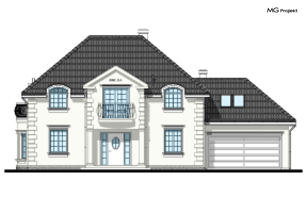 Wariant domku w wersji z garażem dwustanowiskowym i pomieszczeniem nad garażem dostępnym ze spocznika. Projekt dostosowany do standardu NF40 w zakresie projektu architektoniczno-budowlanego.
