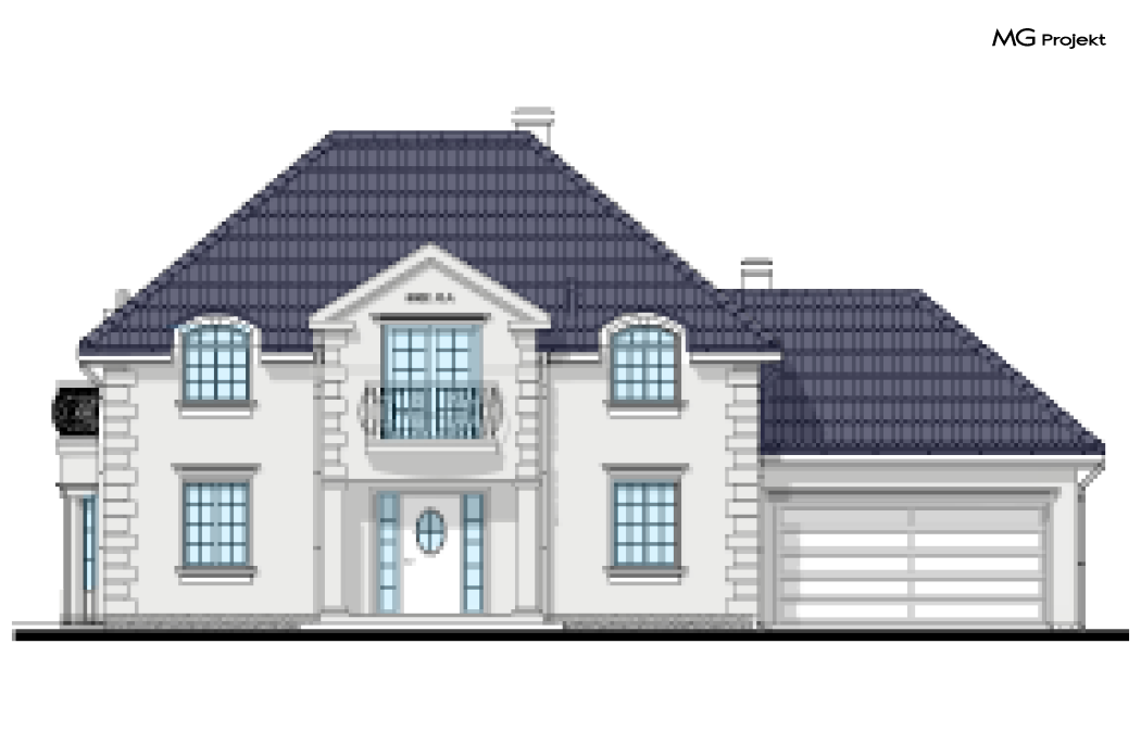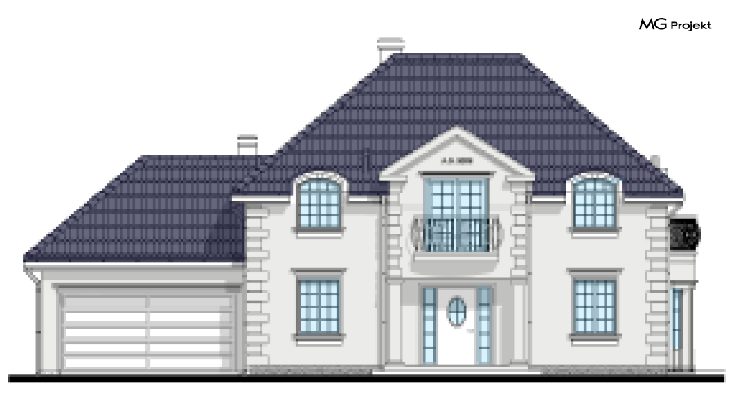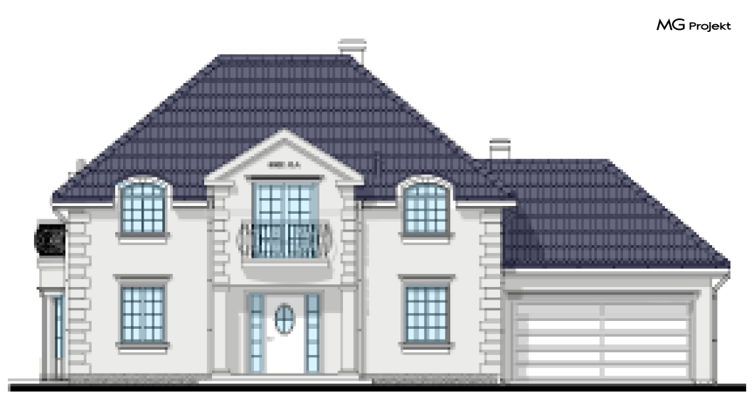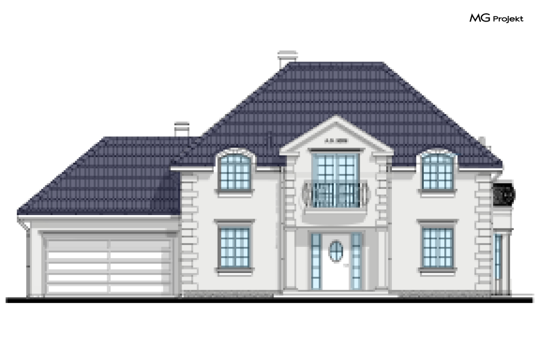 Wariant domku ze zmienionymi oknami na parterze, ze strychem nad garażem (dwa rysunki), oraz obniżonym stropem garażu.