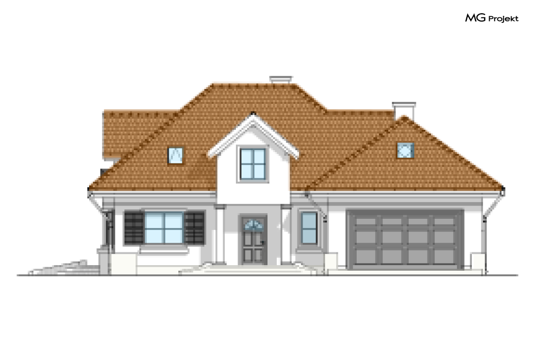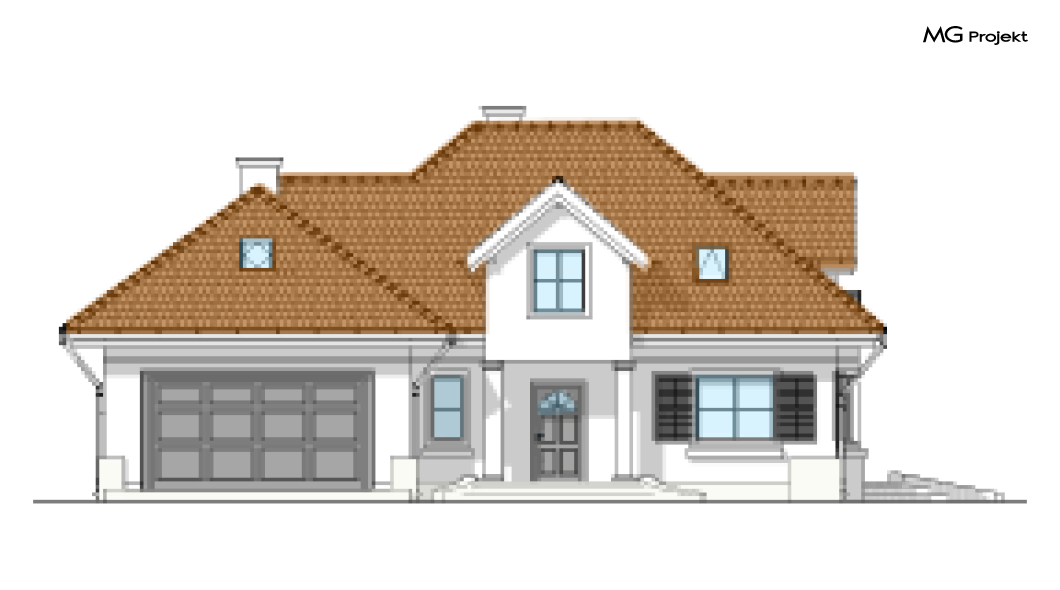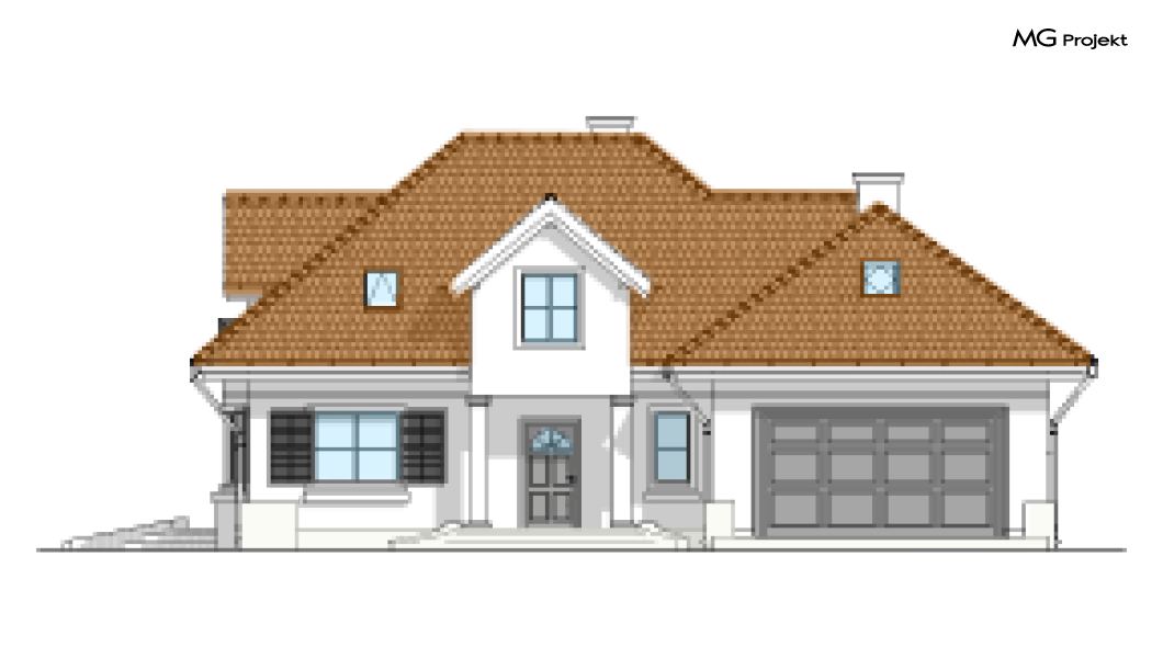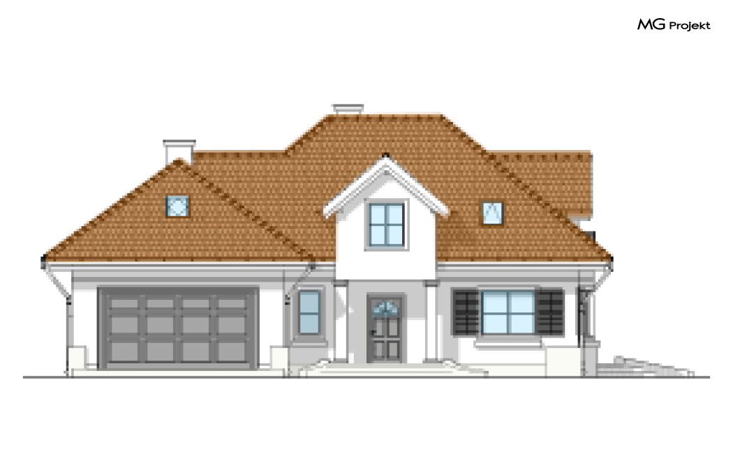 Wariant projektu z czterema pokojami na poddaszu i dodatkową garderobą. W pracowni MG Projekt dostępna jest także wersja projektu Maja w odbiciu lustrzanym oraz inne jego warianty: projekt domu Maja, projekt domu Maja 2, projekt domu Maja 3, projekt domu Maja 4.