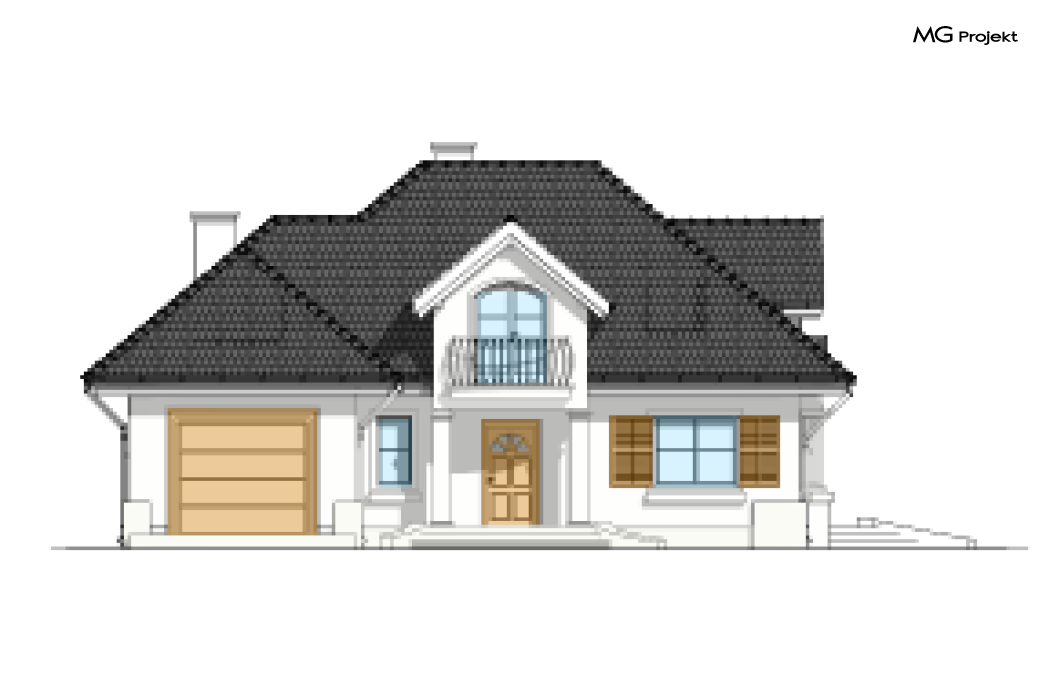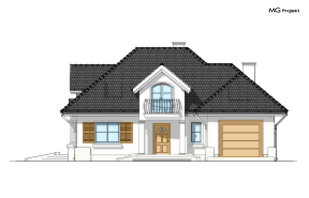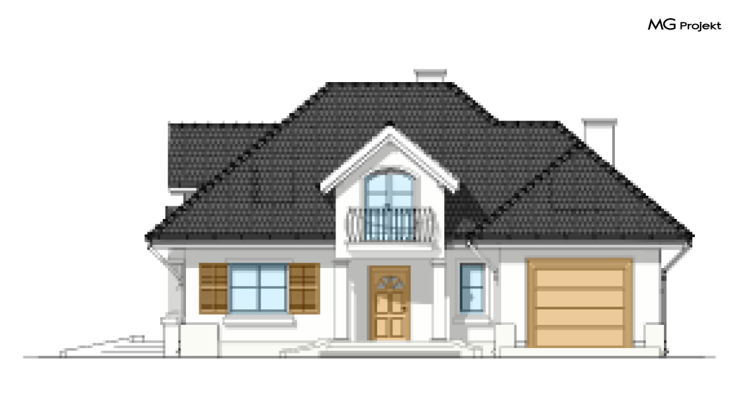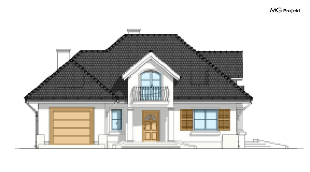 Wariant projektu z pojedynczym garażem i dwoma garderobami na poddaszu. W pracowni MG Projekt dostępna jest także wersja projektu Maja w odbiciu lustrzanym oraz inne jego warianty: projekt domu Maja, projekt domu Maja 2, projekt domu Maja 3, projekt domu Maja 4.