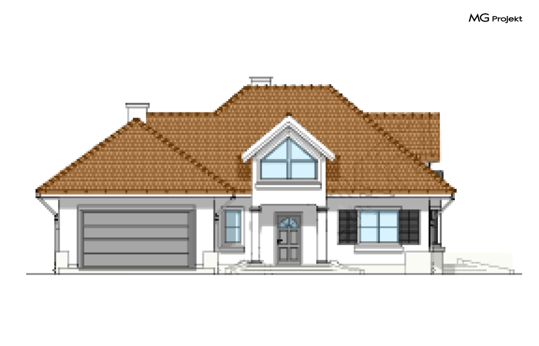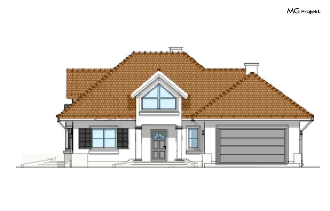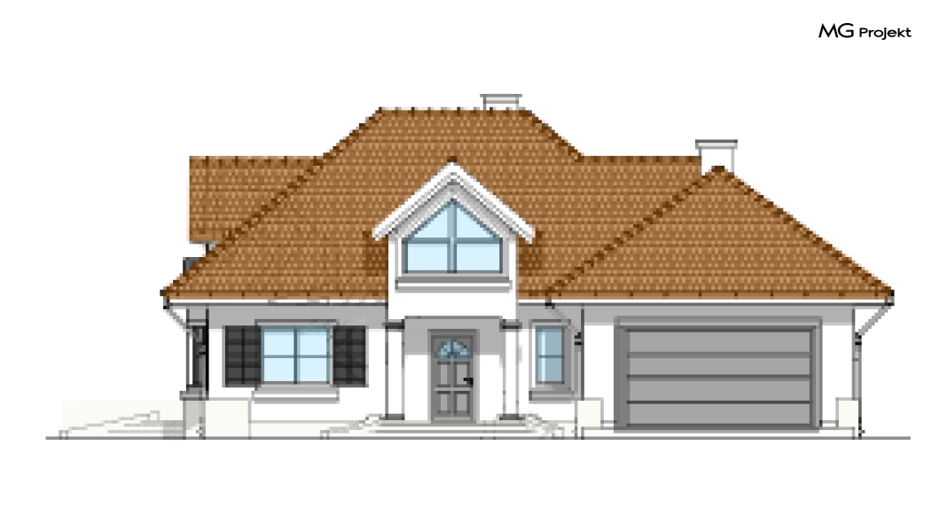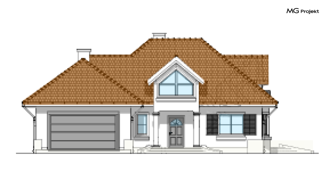 Wariant projektu z podwójnym garażem i czterema pokojami na poddaszu. W pracowni MG Projekt dostępna jest także wersja projektu Maja w odbiciu lustrzanym oraz inne jego warianty: projekt domu Maja, projekt domu Maja 2, projekt domu Maja 3, projekt domu Maja 4.