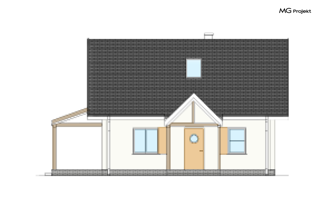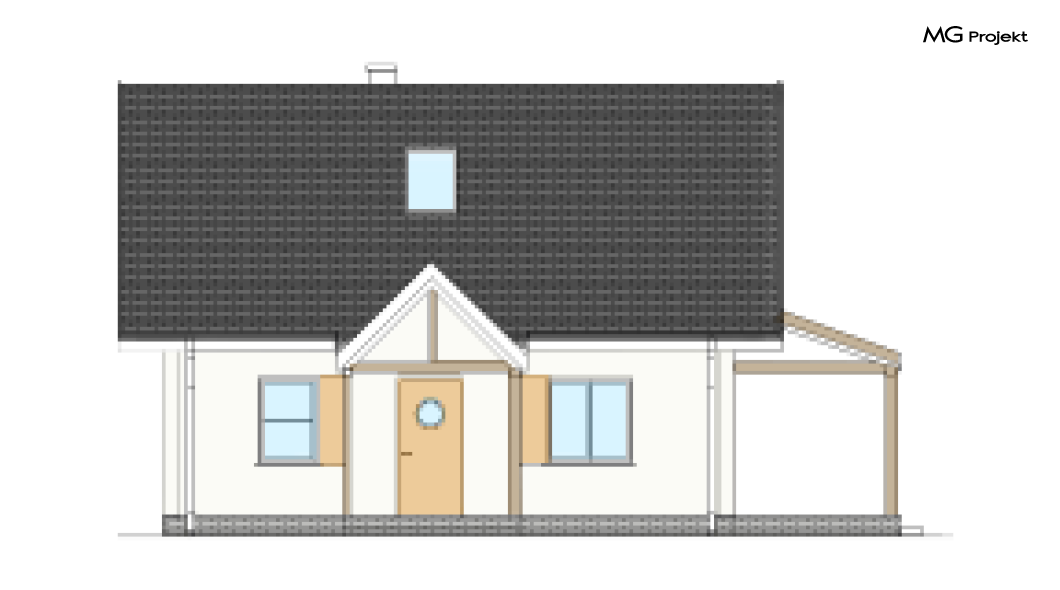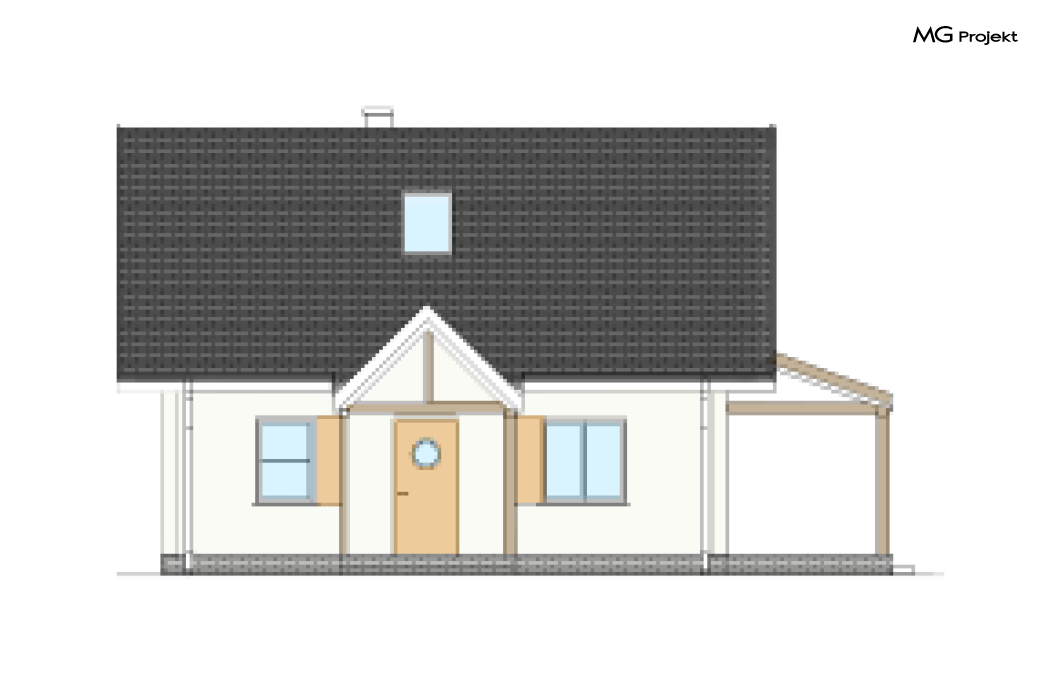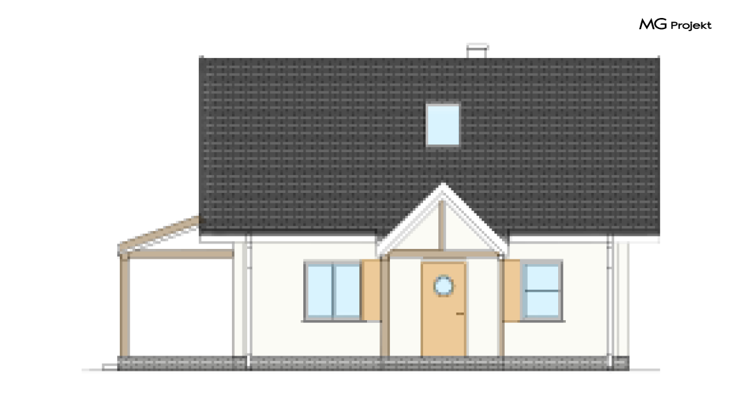 Wariant z częściowym podpiwniczeniem. Zapraszamy do obejrzenia wszystkich domków z tej serii: https://www.mgprojekt.com.pl/okruszek, https://www.mgprojekt.com.pl/okruszek-wariant-b, https://www.mgprojekt.com.pl/okruszek-wariant-e