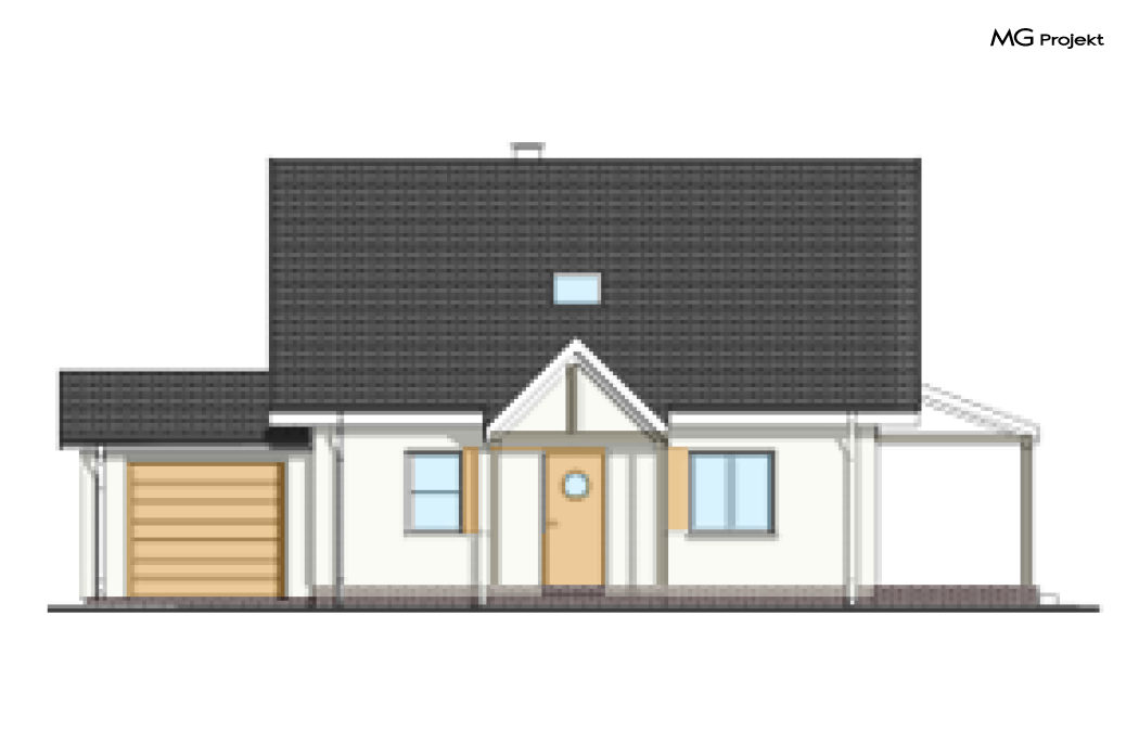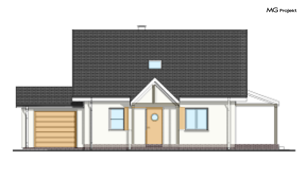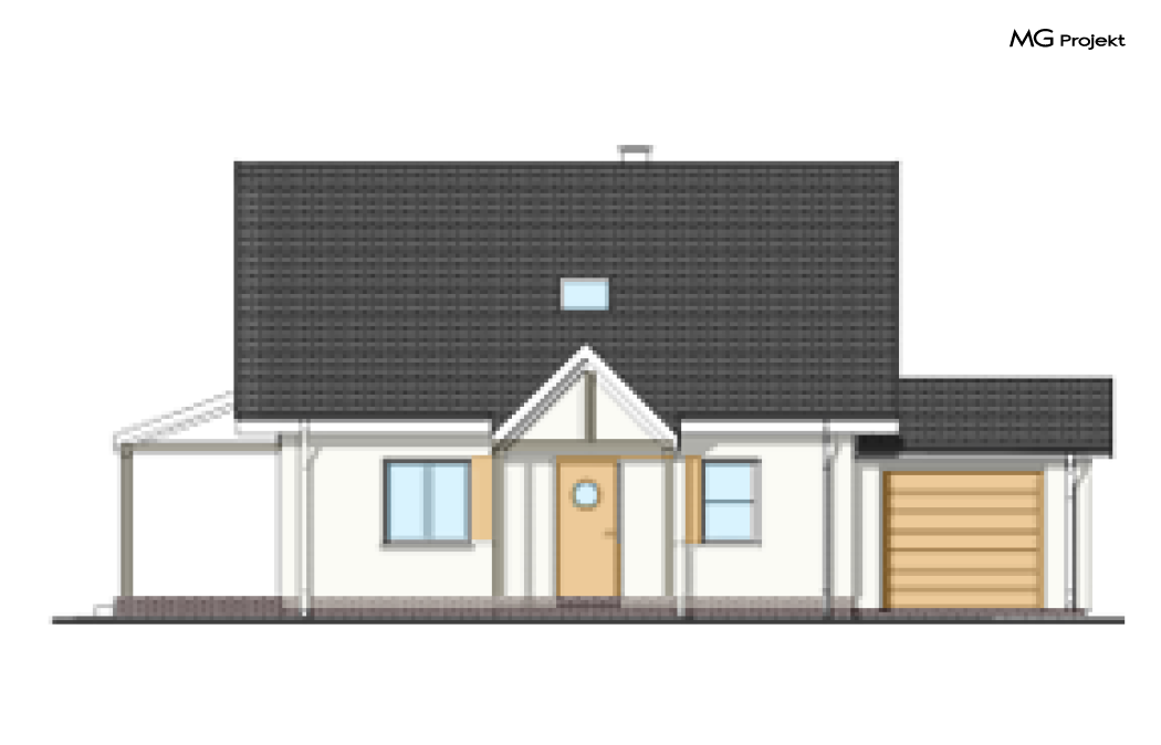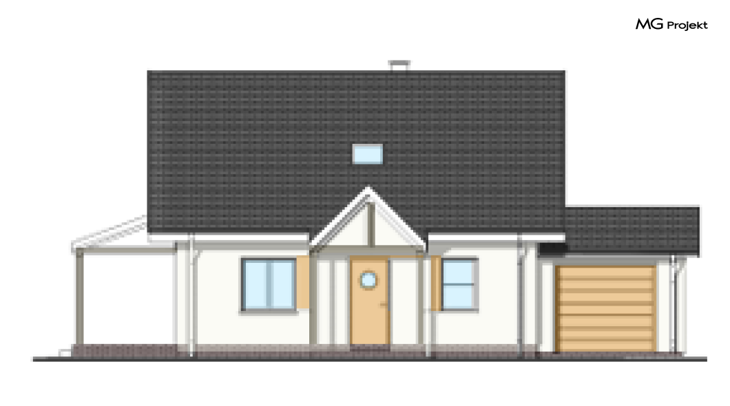 Wariant z garażem, oraz z częściowym podpiwniczeniem. Zapraszamy do obejrzenia wszystkich domków z tej serii: https://www.mgprojekt.com.pl/okruszek, https://www.mgprojekt.com.pl/okruszek-wariant-b, https://www.mgprojekt.com.pl/okruszek-wariant-e