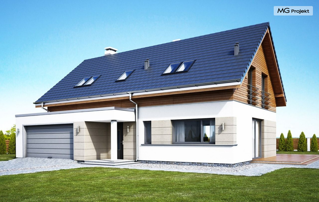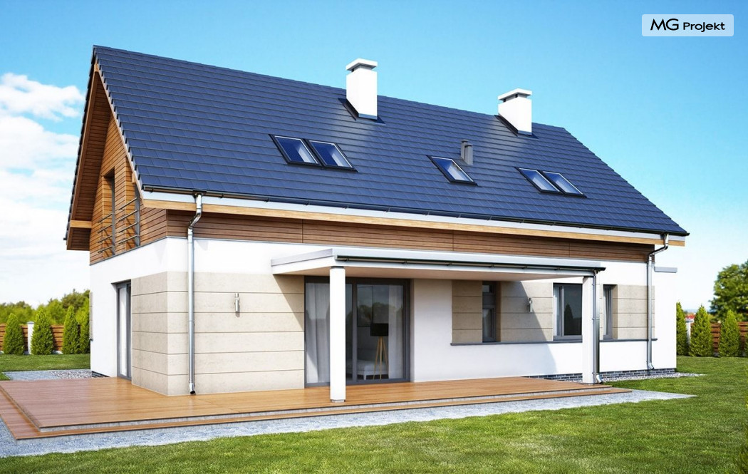 Koszt wzniesienia budynku wraz z pokryciem dachu i stolarką zewnętrzną (okna i drzwi). Bez instalacji, ocieplenia i robót wykończeniowych.