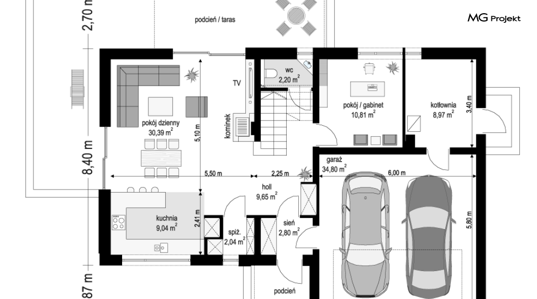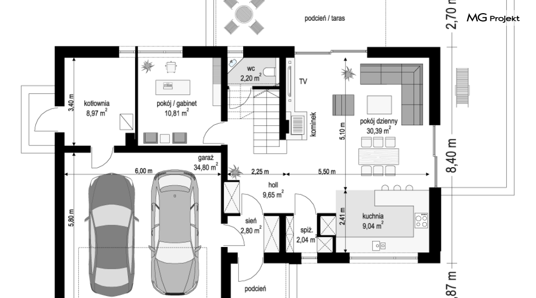 Obejmuje koszt wszystkich robót stanu surowego, wykonania instalacji wewnętrznych oraz robót wykończeniowych.
