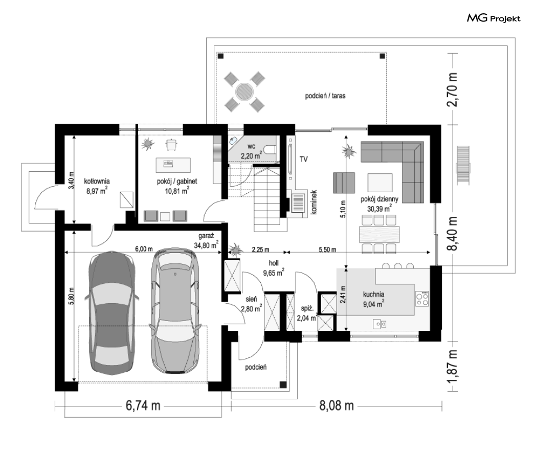 Łączna powierzchnia tzw. pomieszczeń użytkowych. Przede wszystkim nie zalicza się do niej powierzchni garażu, nieużytkowego strychu, piwnicy, kotłowni.