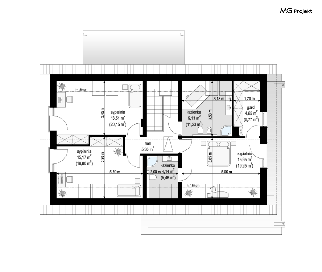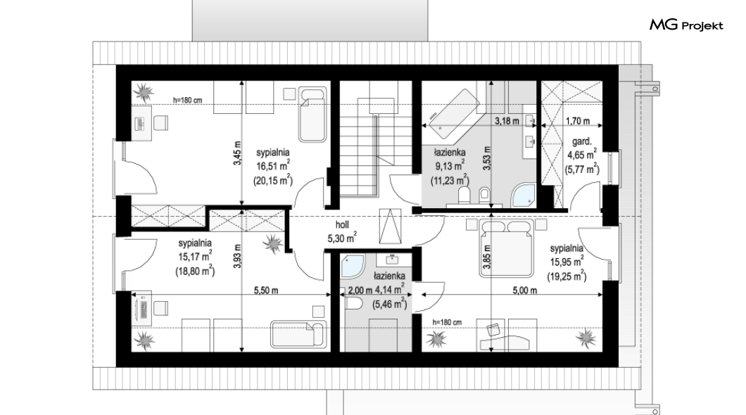 Zapoznaj się ze szczegółowymi rysunkami rzutów kondygnacji w PDF dla tego projektu.