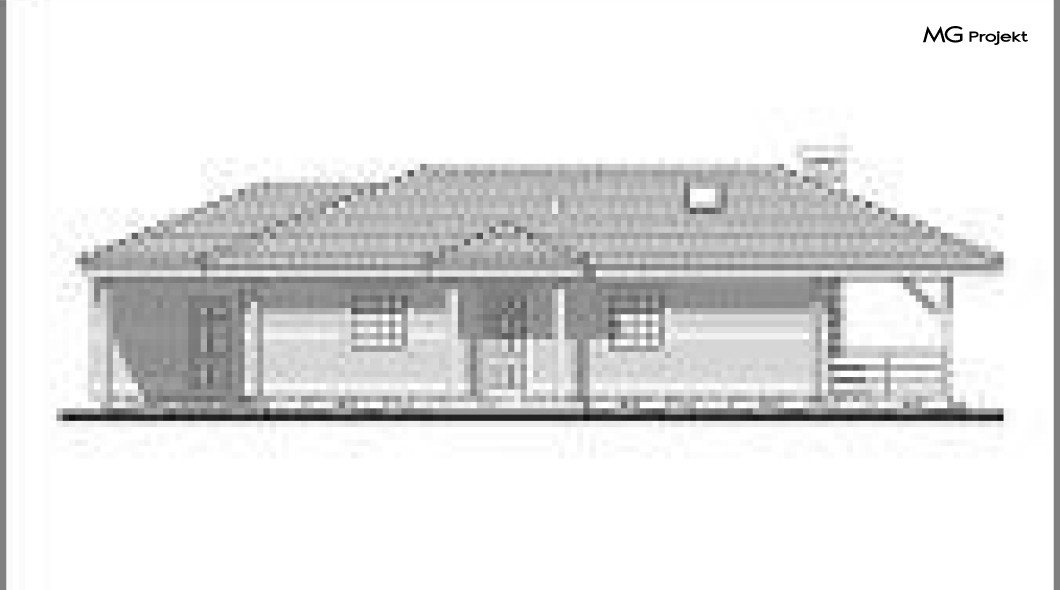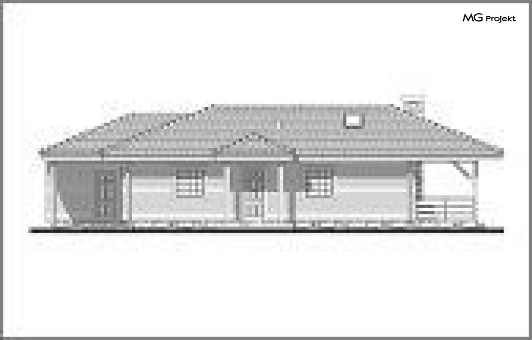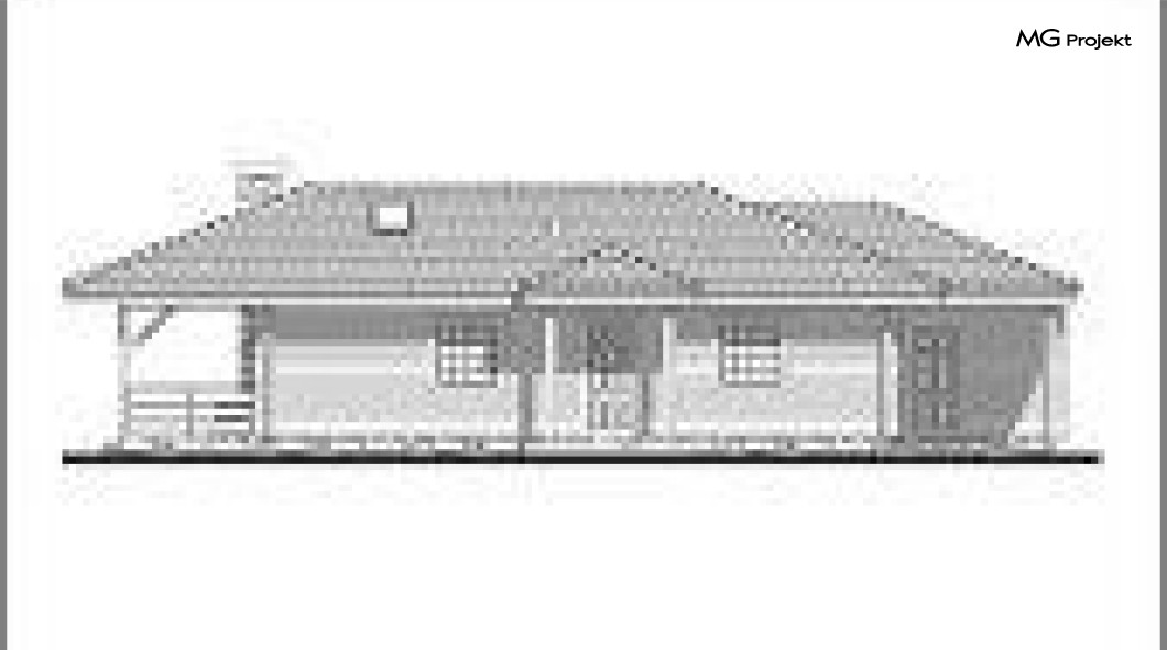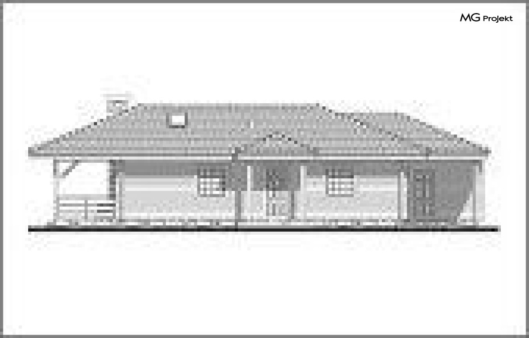 Większa wersja drewniana z bali z wiatą garażową i pomieszczeniem gospodarczym.
