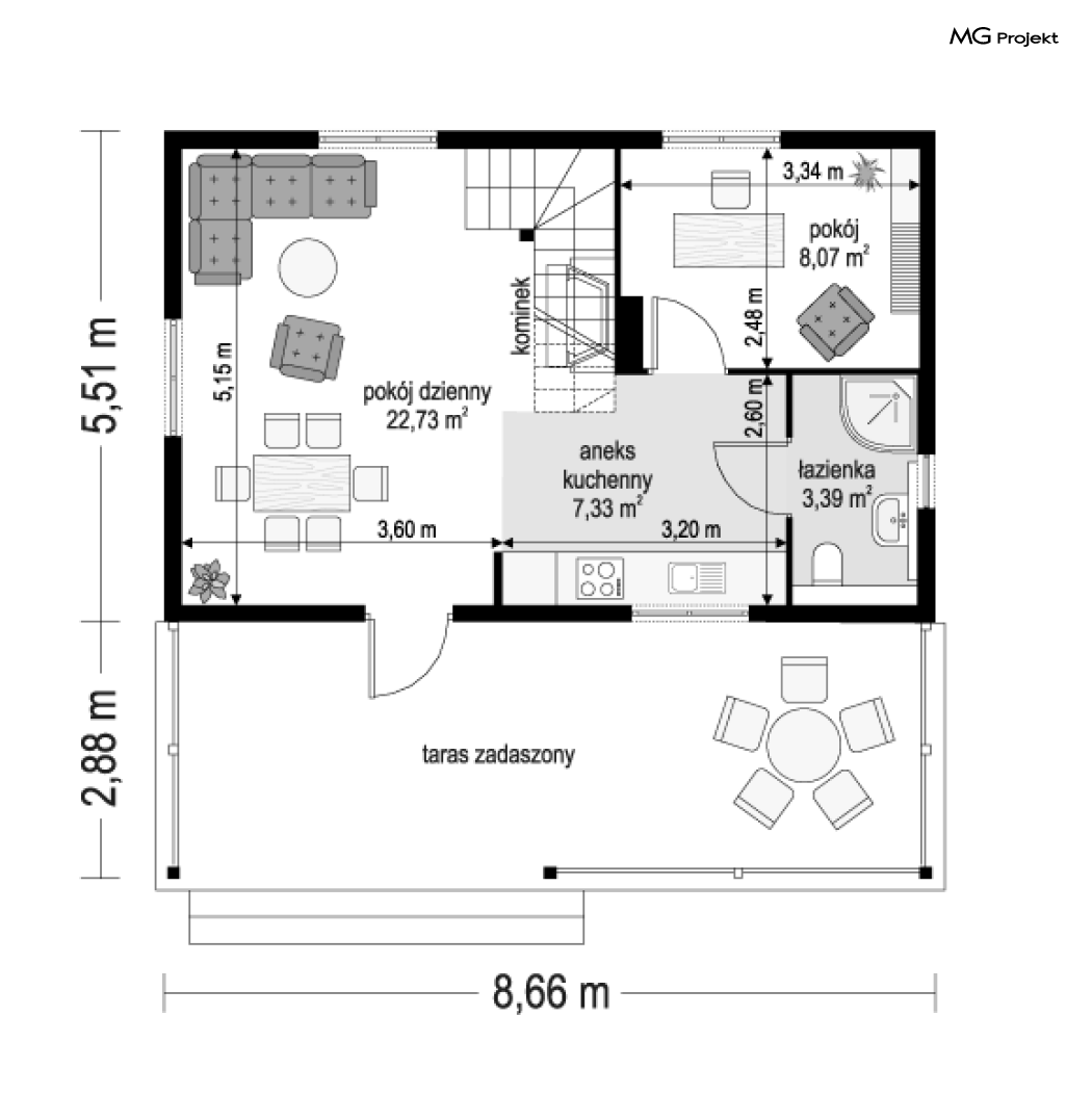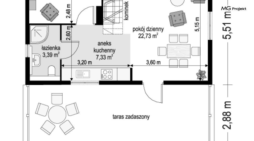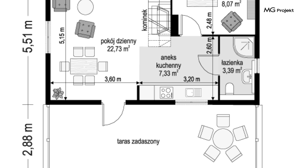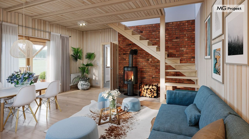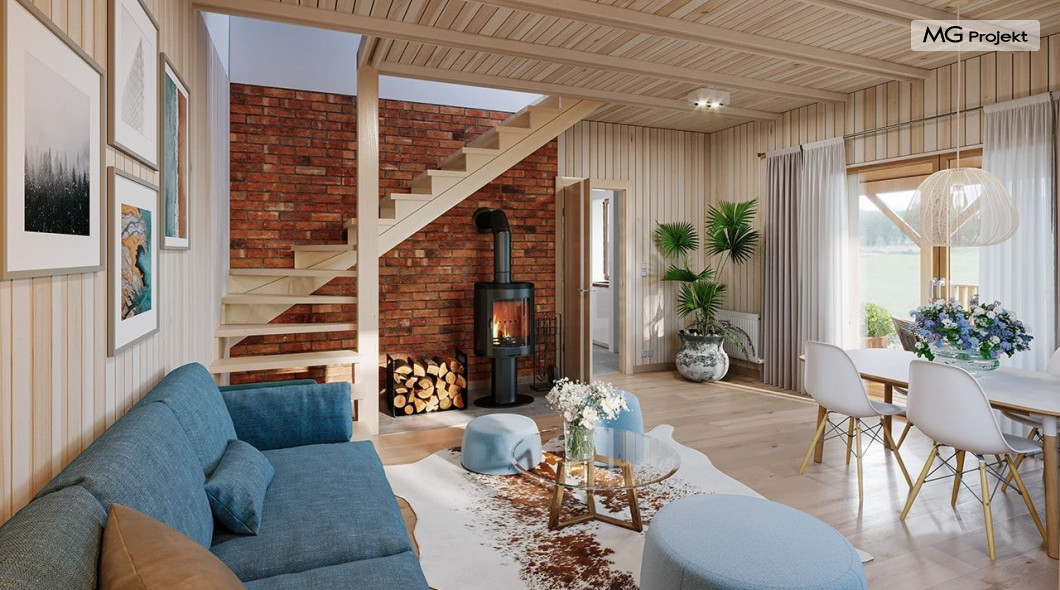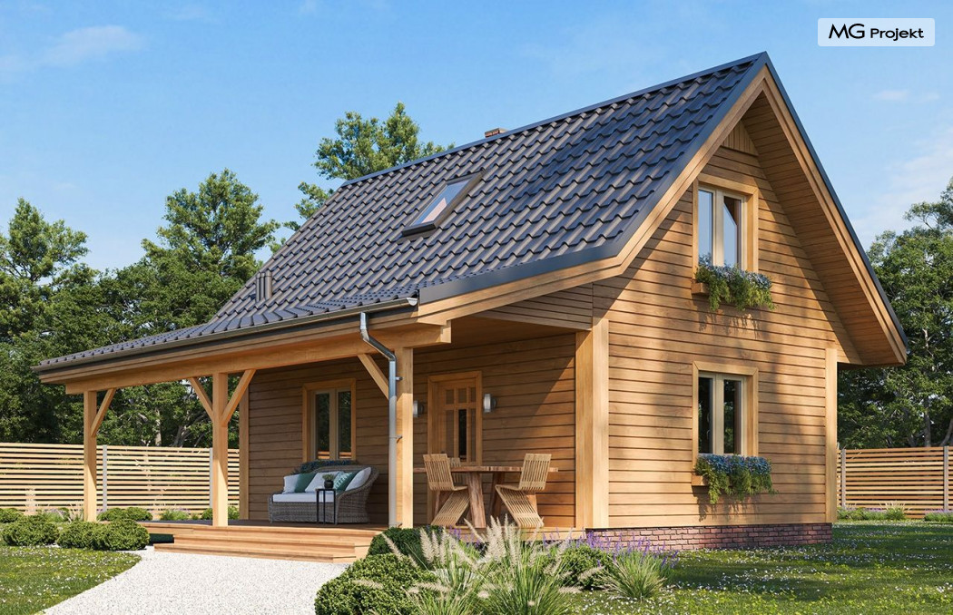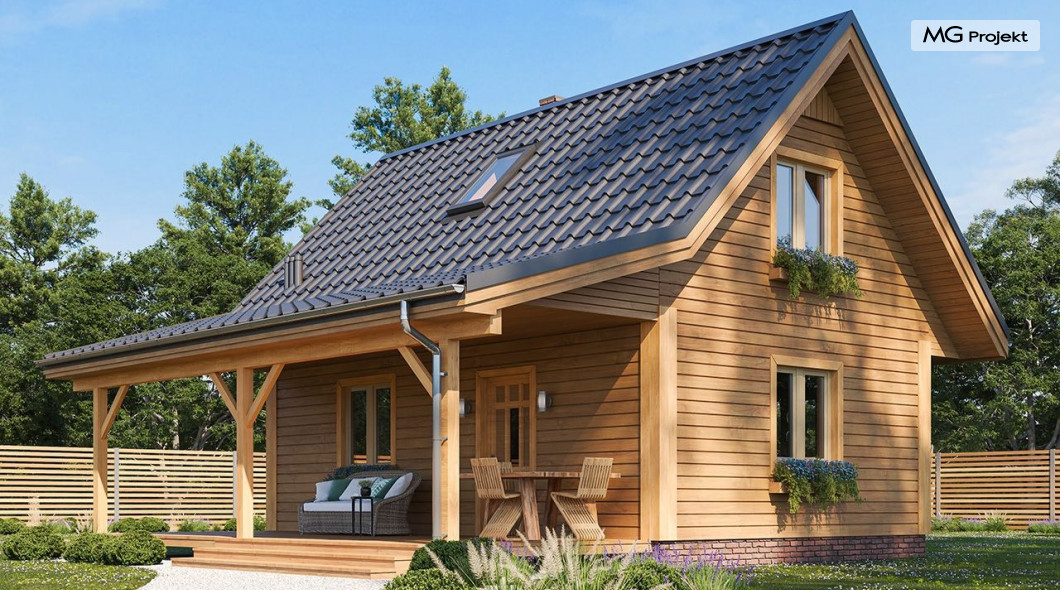 Wariant domku ze zmienionym układem pomieszczeń, oraz dodatkowym pokojem na parterze.