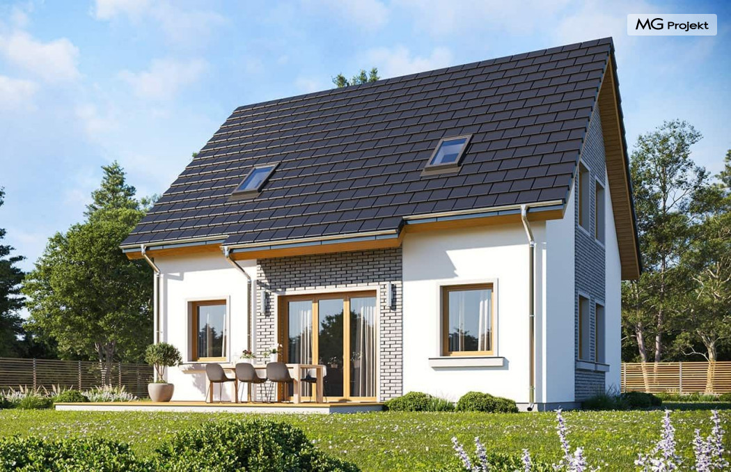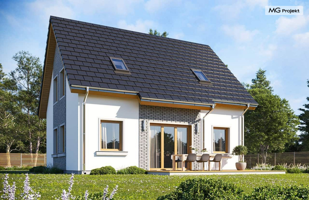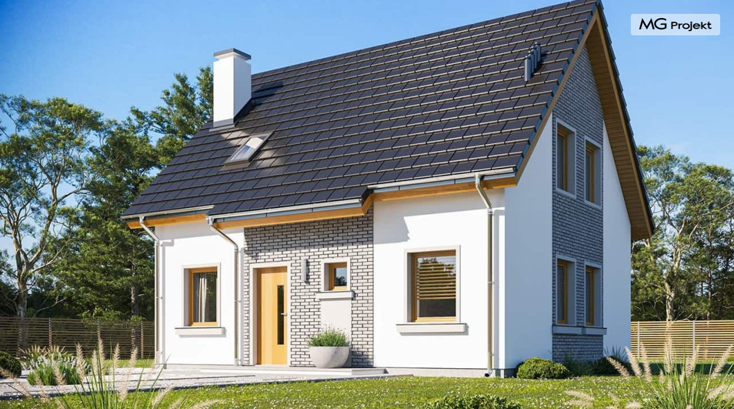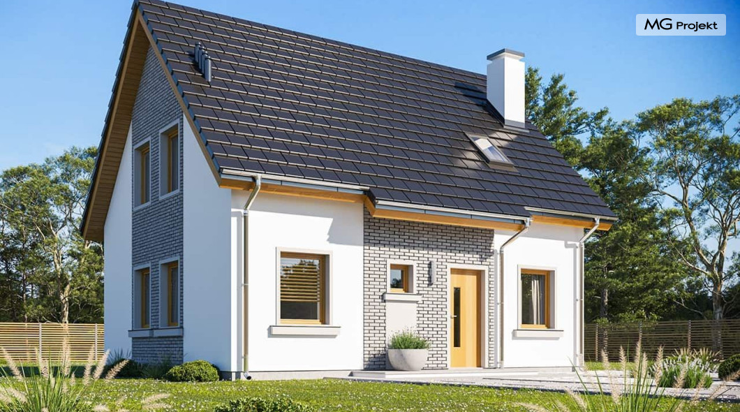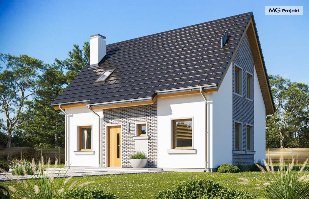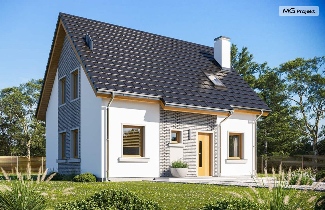 Wariant projektu ze zmienionym układem i funkcją pomieszczeń, likwidacja komina, podniesiona ścianka kolankowa do 1 m, zmiany wymiaru okien.