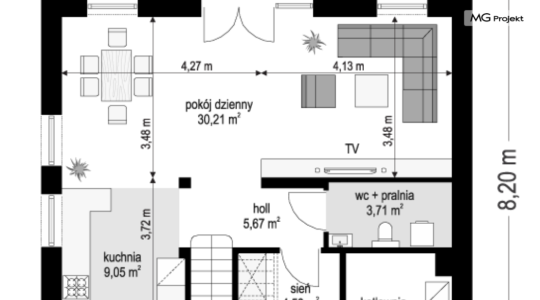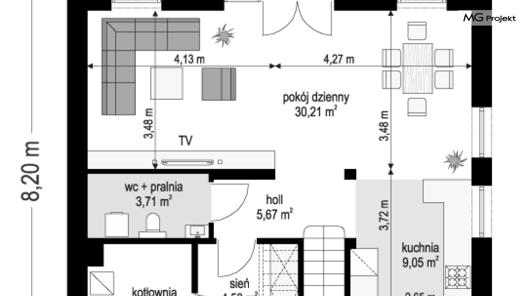 Maksymalna szerokość budynku wraz z grubością izolacji cieplnej oraz okładzin ściennych.