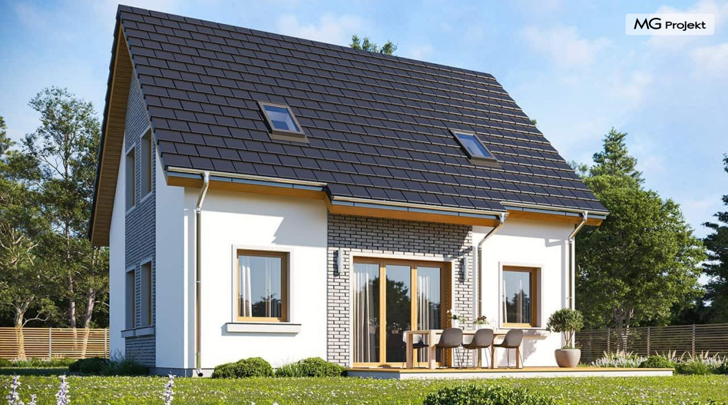 Koszt wzniesienia budynku wraz z pokryciem dachu i stolarką zewnętrzną (okna i drzwi). Bez instalacji, ocieplenia i robót wykończeniowych.