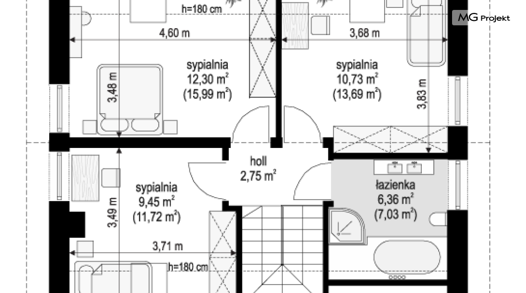 Wysokość wyznaczona od poziomu terenu do najwyżej położonej części dachu (np. kalenicy), zwykle bez uwzględnienia kominów.