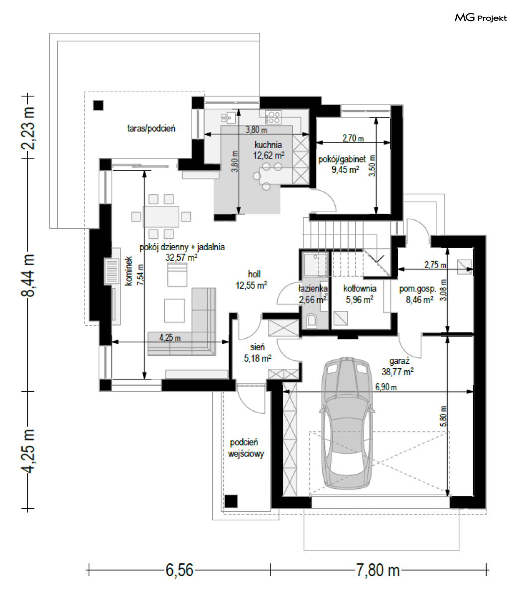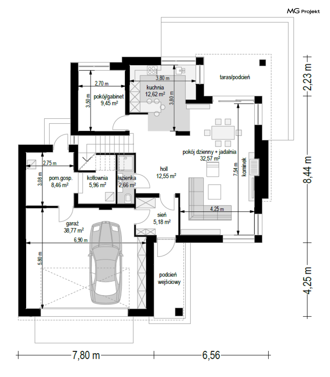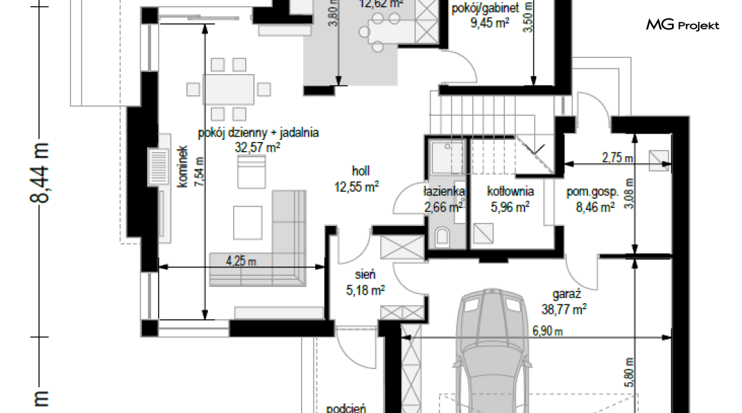 Łączna powierzchnia tzw. pomieszczeń użytkowych. Przede wszystkim nie zalicza się do niej powierzchni garażu, nieużytkowego strychu, piwnicy, kotłowni.