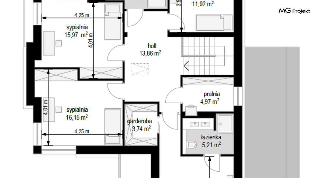 Maksymalna szerokość budynku wraz z grubością izolacji cieplnej oraz okładzin ściennych.