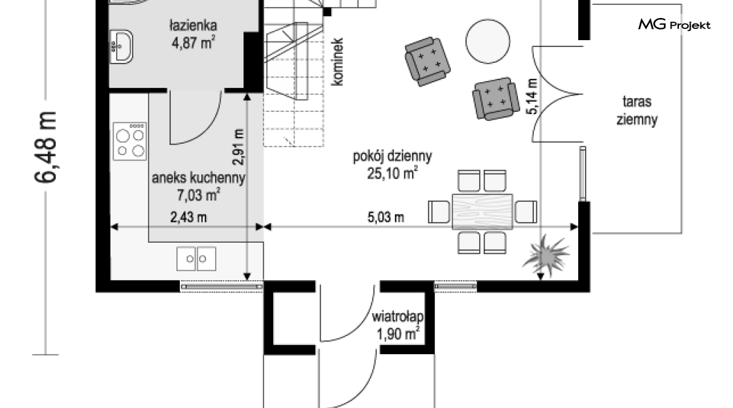 Maksymalna szerokość budynku wraz z grubością izolacji cieplnej oraz okładzin ściennych.