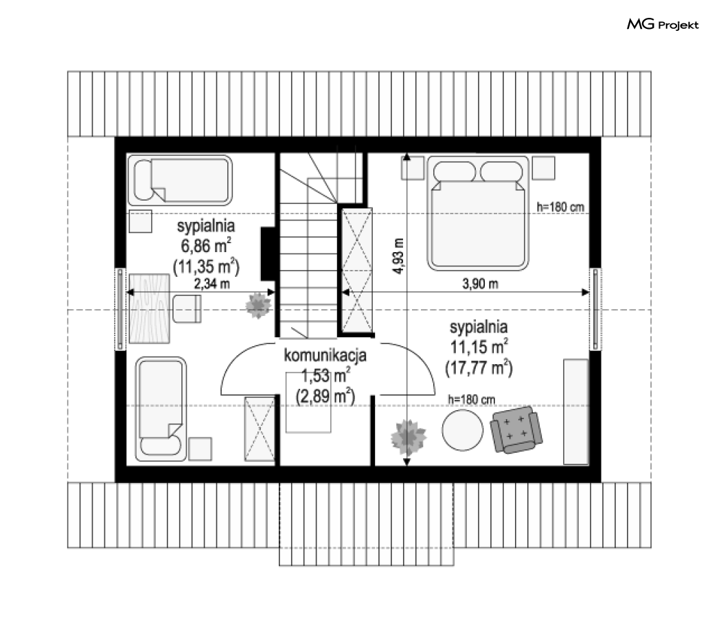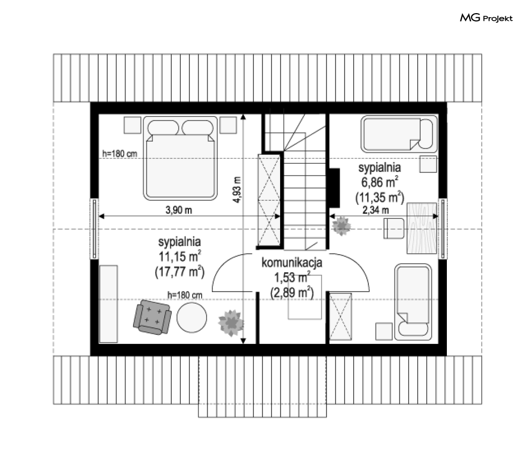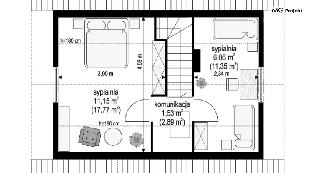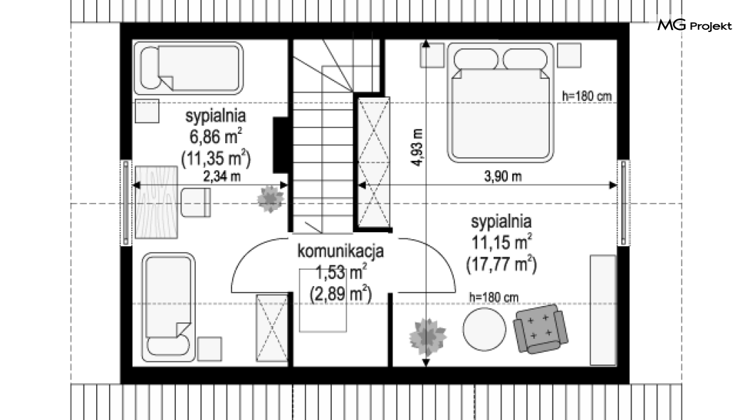 Wysokość wyznaczona od poziomu terenu do najwyżej położonej części dachu (np. kalenicy), zwykle bez uwzględnienia kominów.