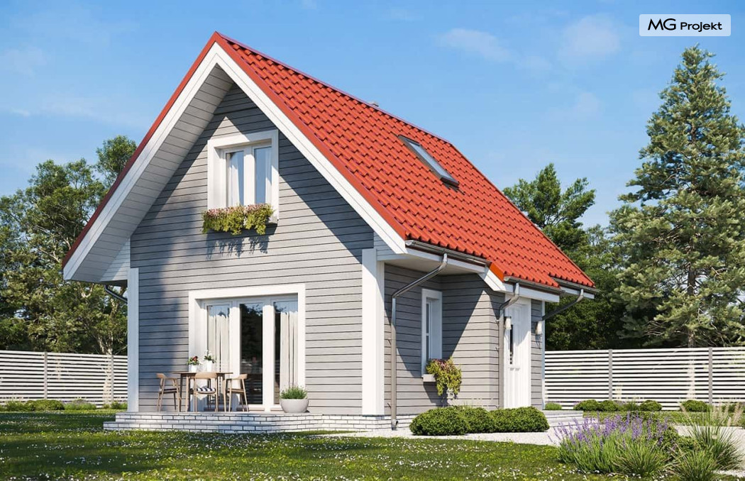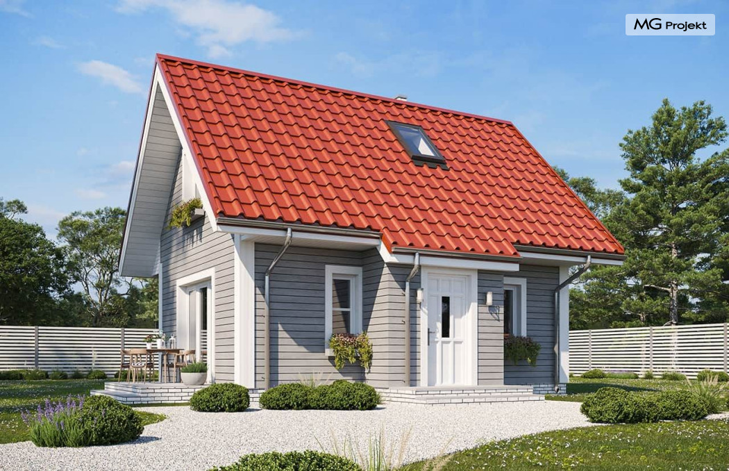 Koszt wzniesienia budynku wraz z pokryciem dachu i stolarką zewnętrzną (okna i drzwi). Bez instalacji, ocieplenia i robót wykończeniowych.