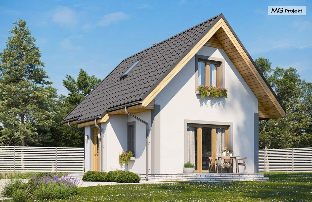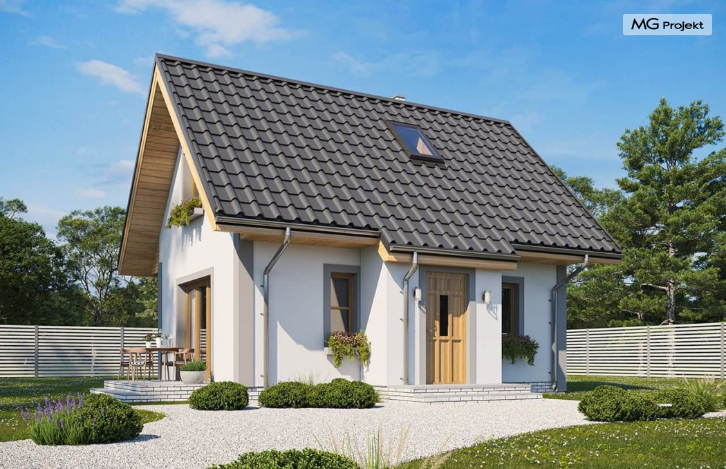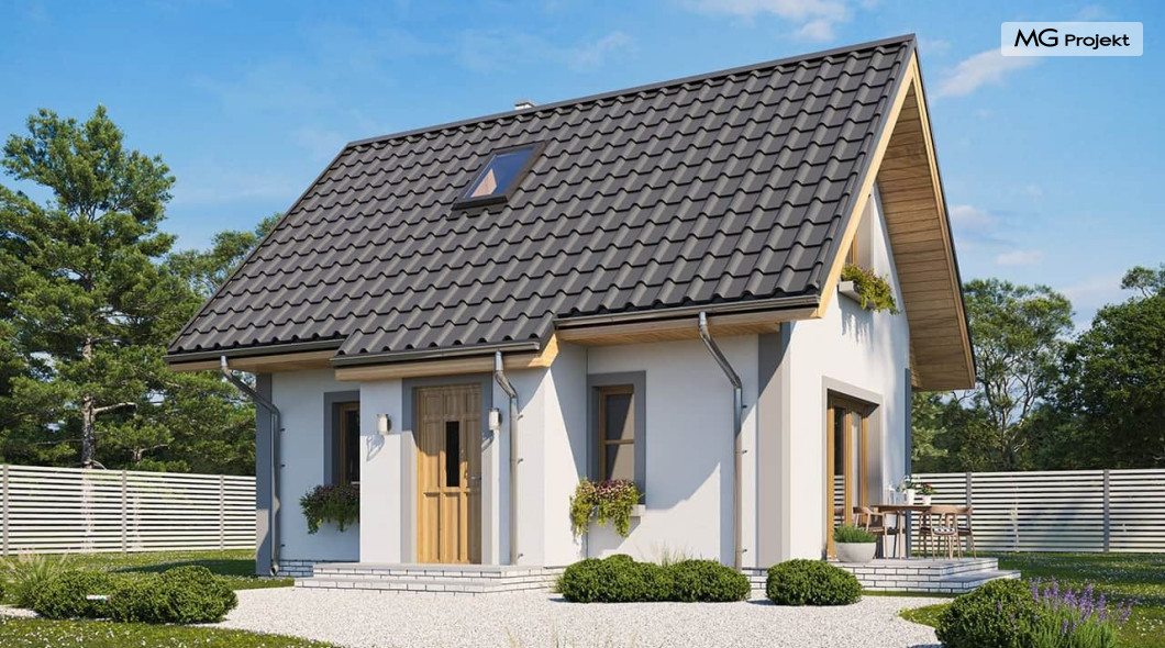 Koszt wzniesienia budynku wraz z pokryciem dachu i stolarką zewnętrzną (okna i drzwi). Bez instalacji, ocieplenia i robót wykończeniowych.