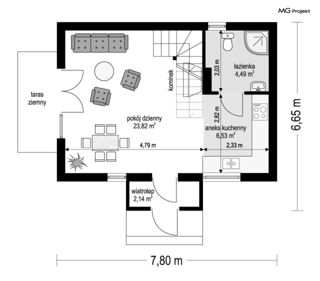 Łączna powierzchnia tzw. pomieszczeń użytkowych. Przede wszystkim nie zalicza się do niej powierzchni garażu, nieużytkowego strychu, piwnicy, kotłowni.