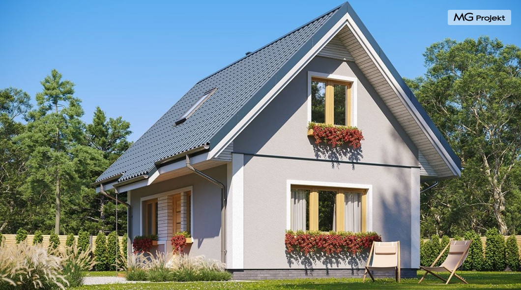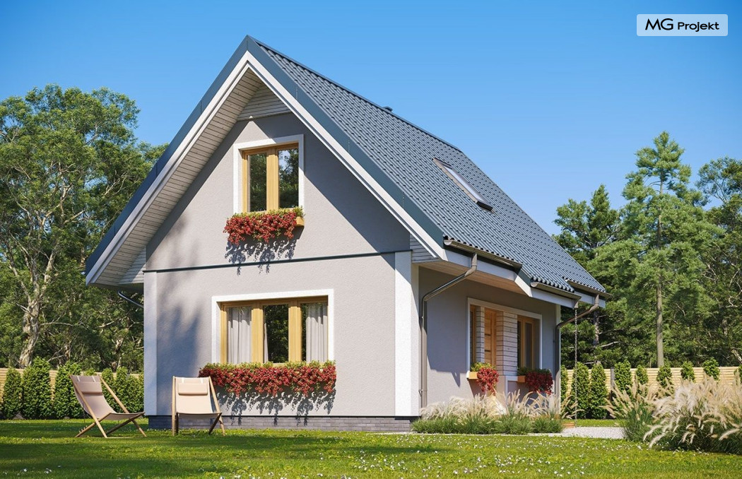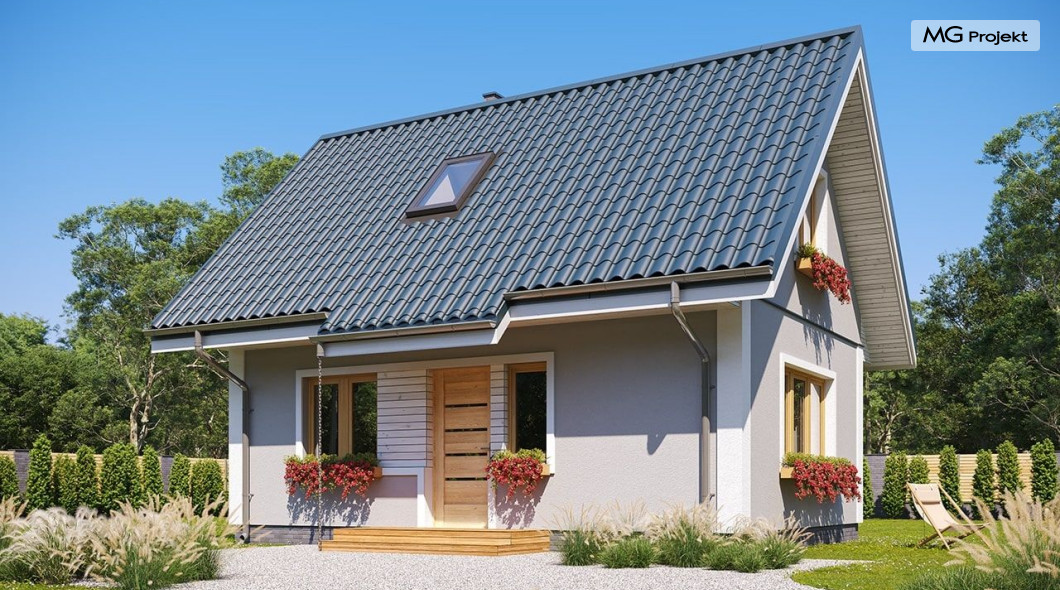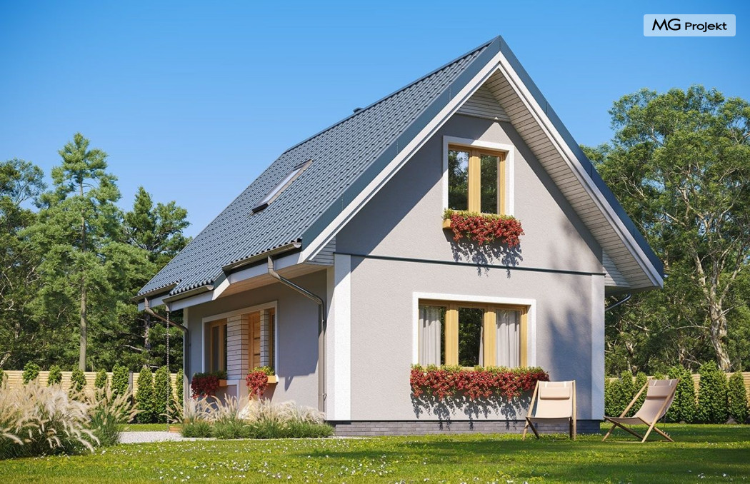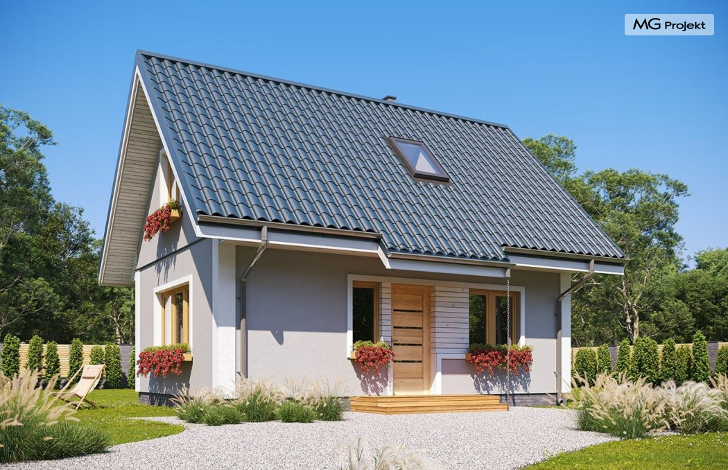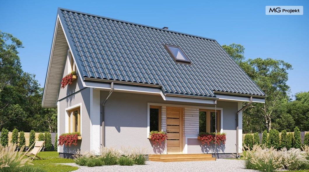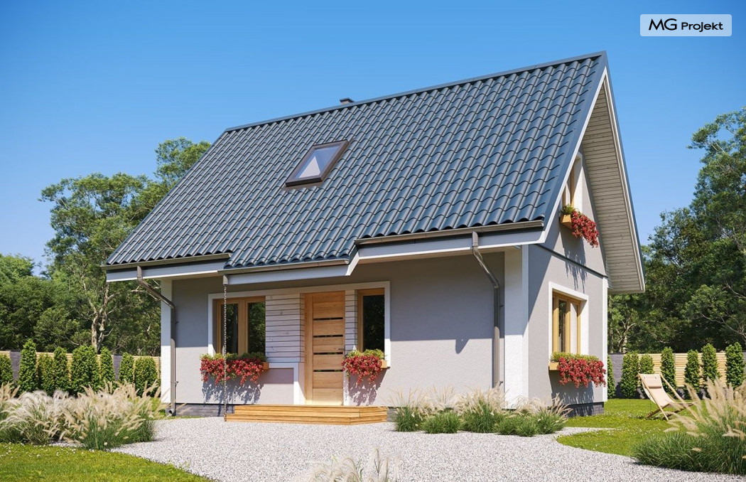 Koszt wzniesienia budynku wraz z pokryciem dachu i stolarką zewnętrzną (okna i drzwi). Bez instalacji, ocieplenia i robót wykończeniowych.