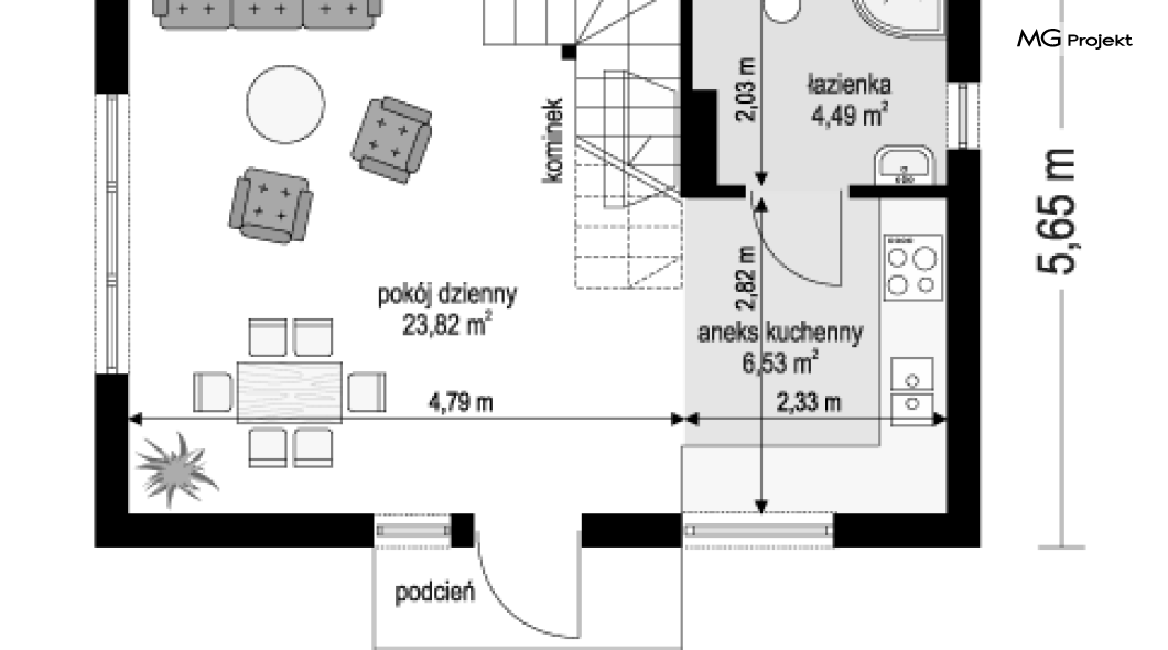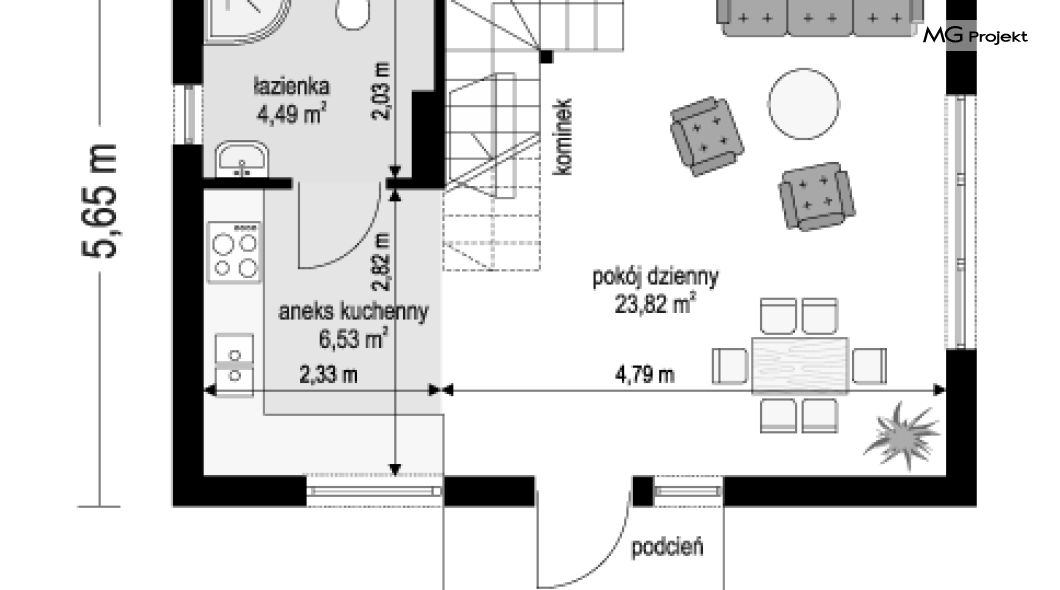 Obejmuje koszt wszystkich robót stanu surowego, wykonania instalacji wewnętrznych oraz robót wykończeniowych.