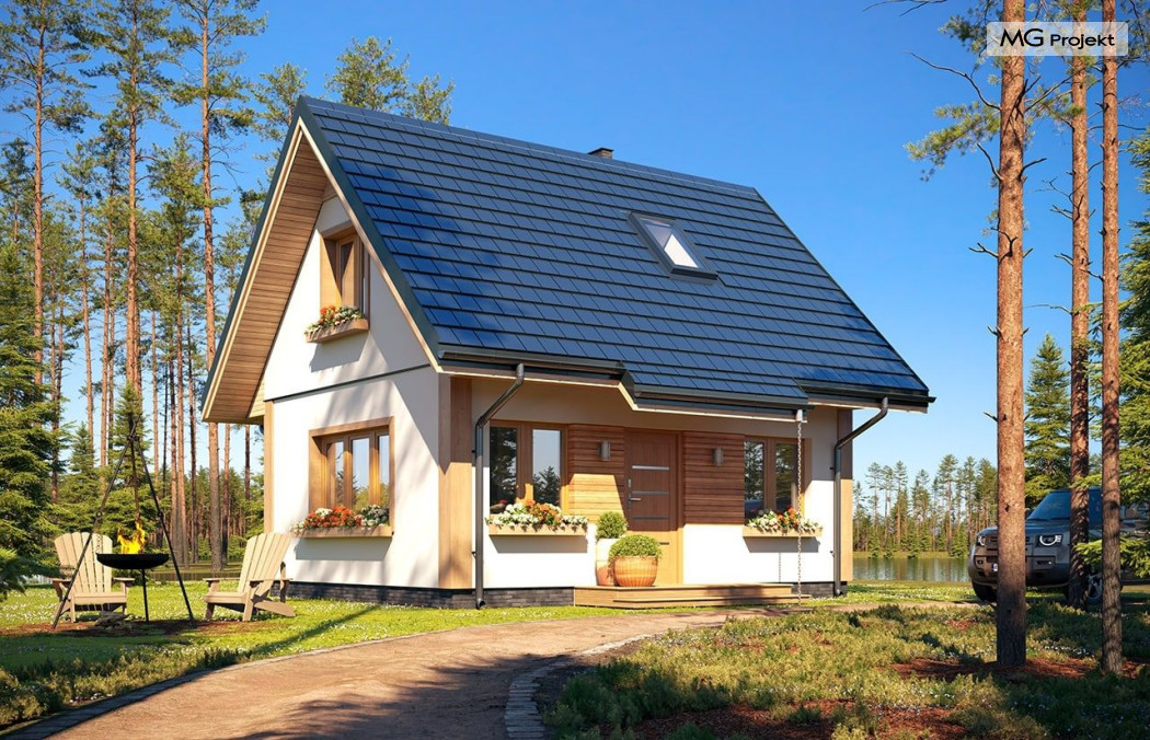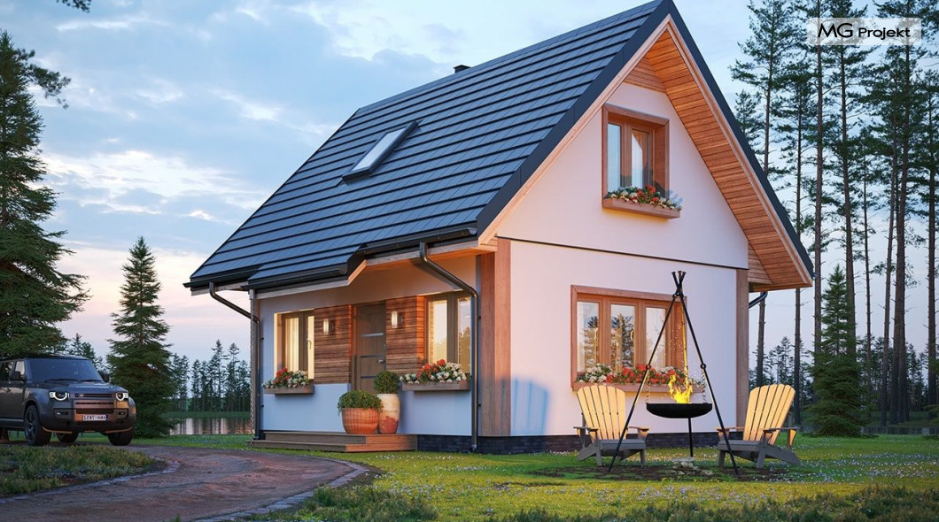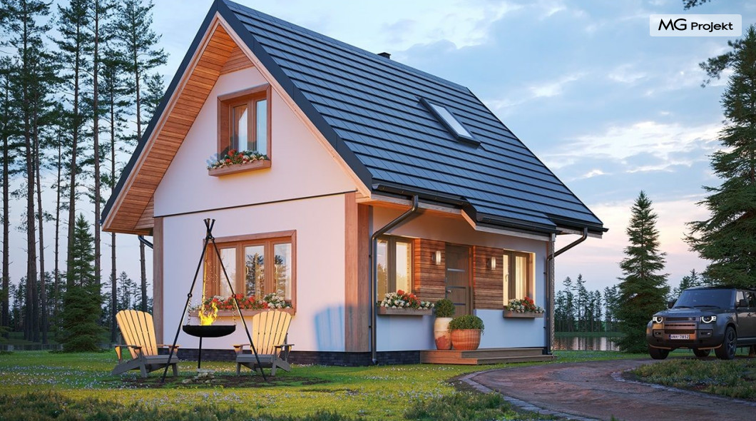 Koszt wzniesienia budynku wraz z pokryciem dachu i stolarką zewnętrzną (okna i drzwi). Bez instalacji, ocieplenia i robót wykończeniowych.