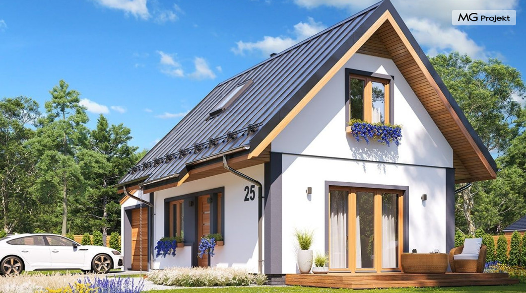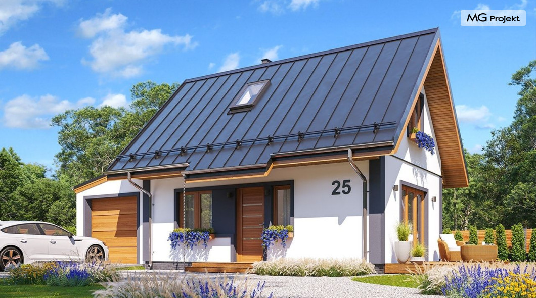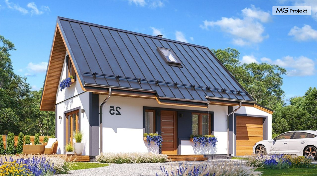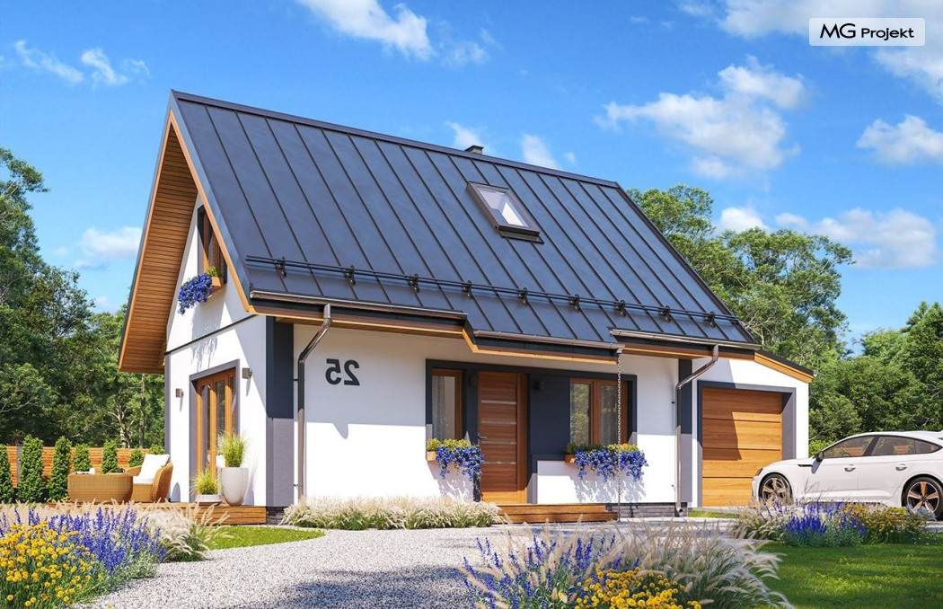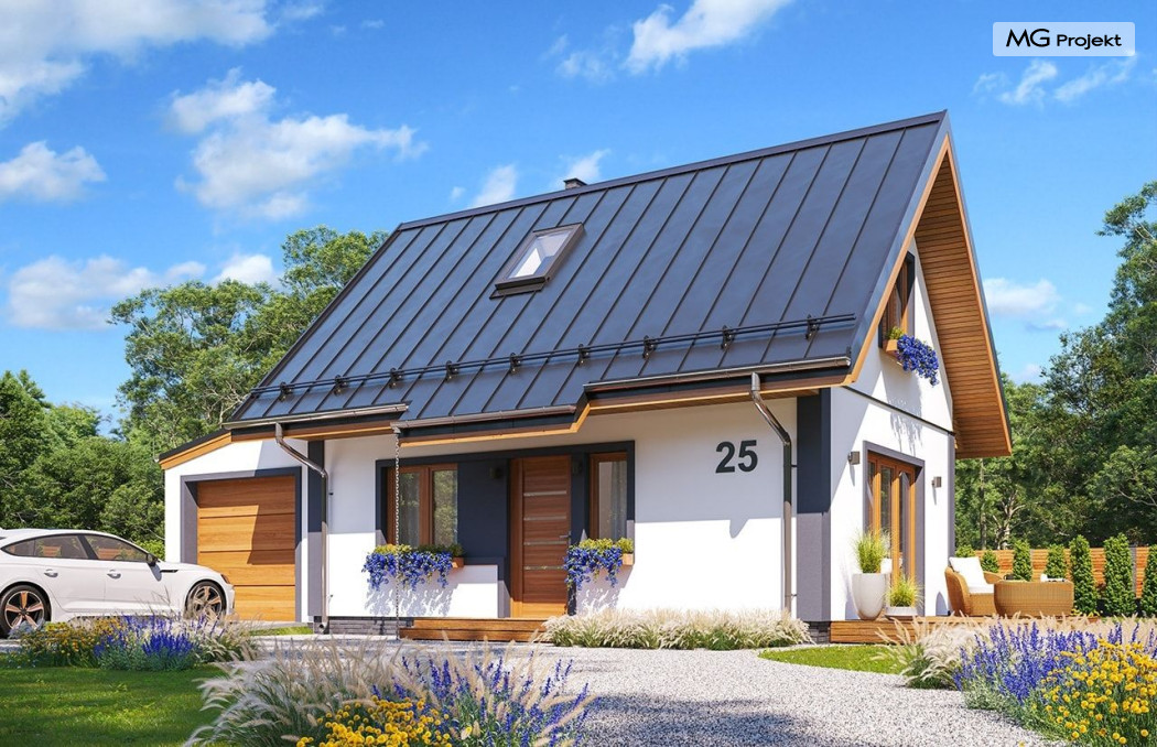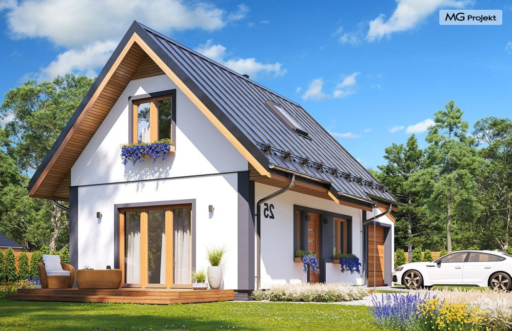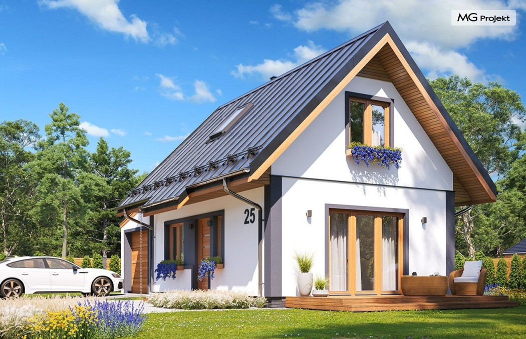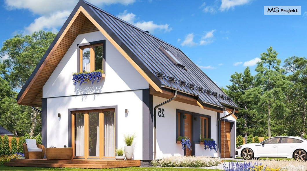 Koszt wzniesienia budynku wraz z pokryciem dachu i stolarką zewnętrzną (okna i drzwi). Bez instalacji, ocieplenia i robót wykończeniowych.