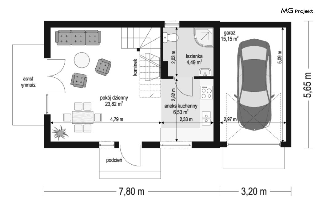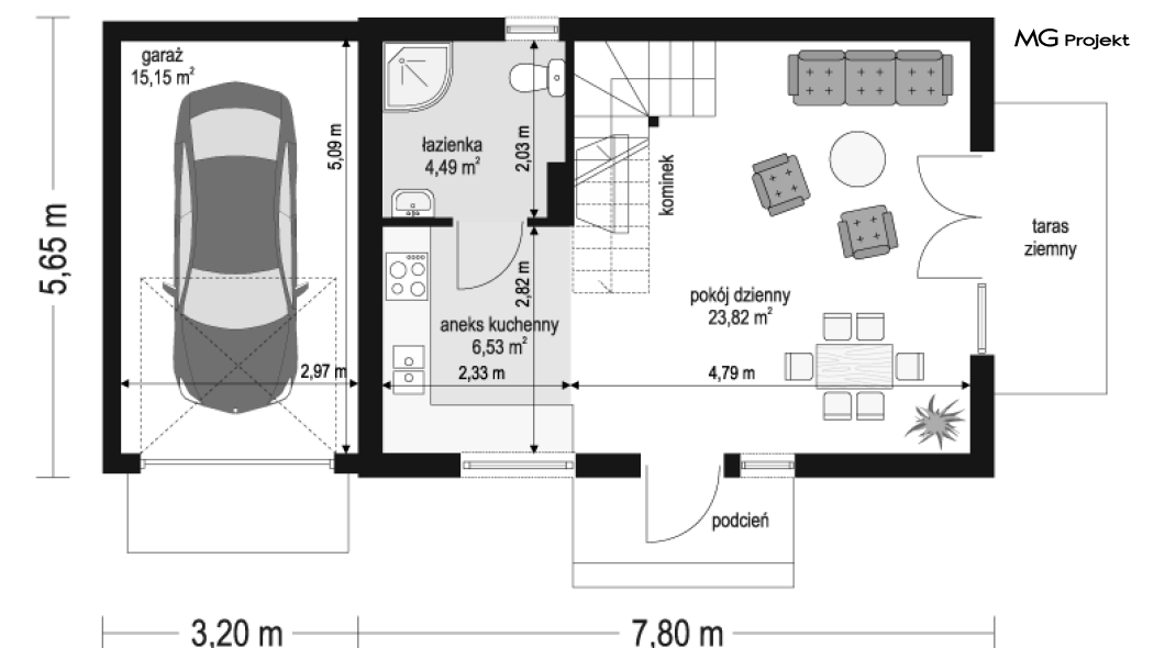 Łączna powierzchnia tzw. pomieszczeń użytkowych. Przede wszystkim nie zalicza się do niej powierzchni garażu, nieużytkowego strychu, piwnicy, kotłowni.