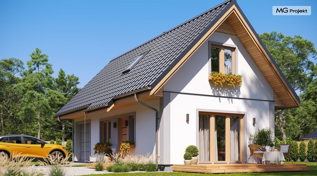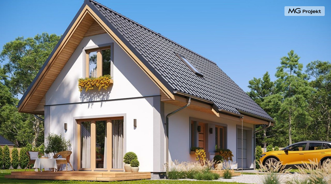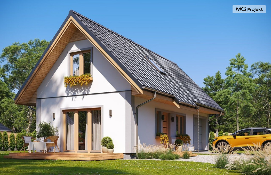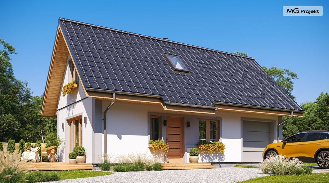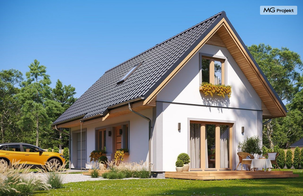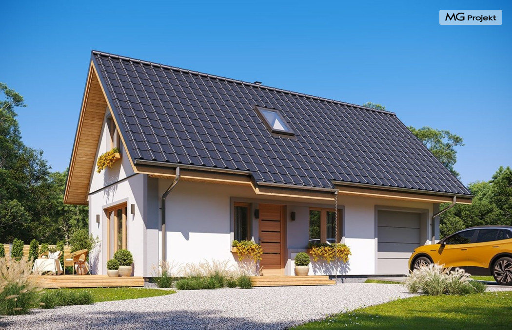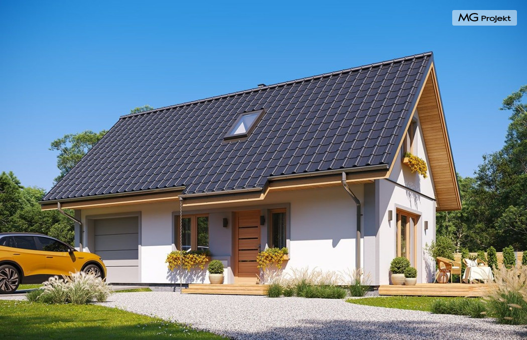 Koszt wzniesienia budynku wraz z pokryciem dachu i stolarką zewnętrzną (okna i drzwi). Bez instalacji, ocieplenia i robót wykończeniowych.