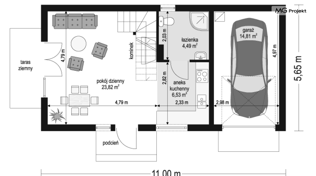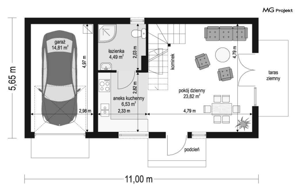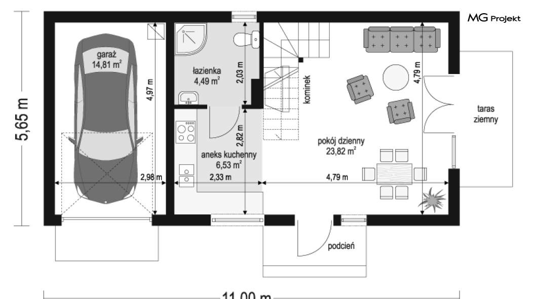 Łączna powierzchnia tzw. pomieszczeń użytkowych. Przede wszystkim nie zalicza się do niej powierzchni garażu, nieużytkowego strychu, piwnicy, kotłowni.