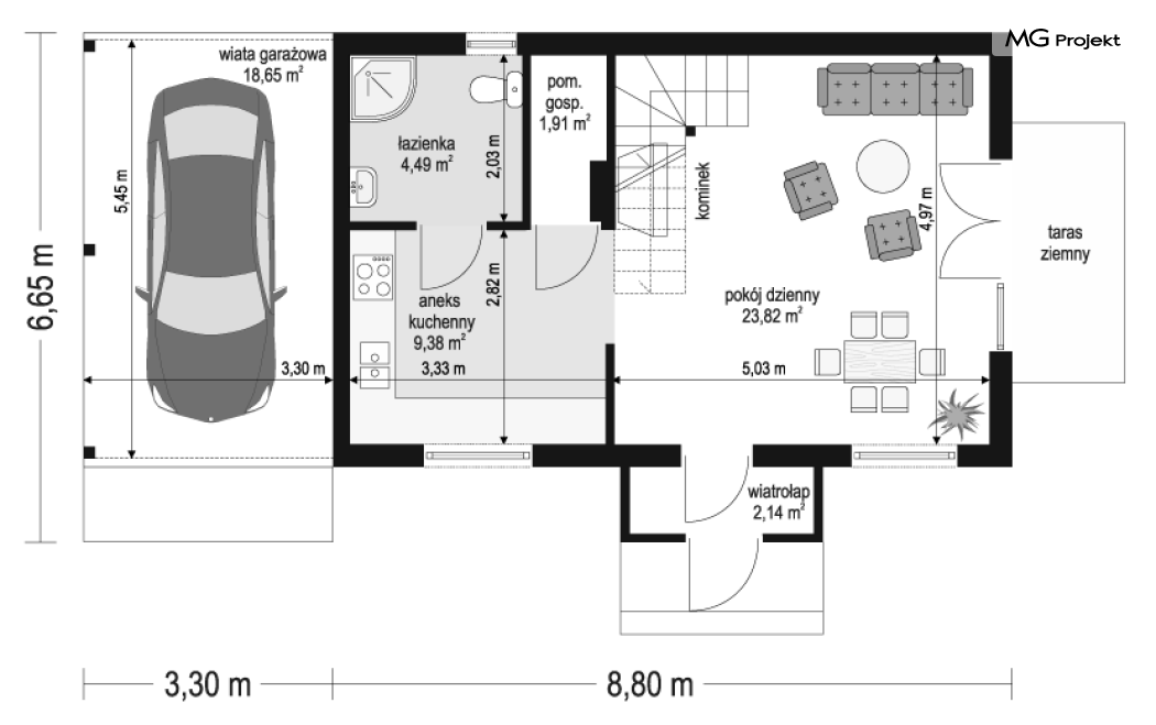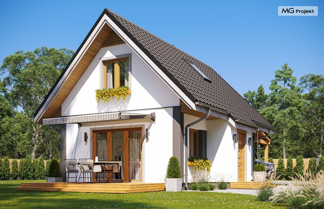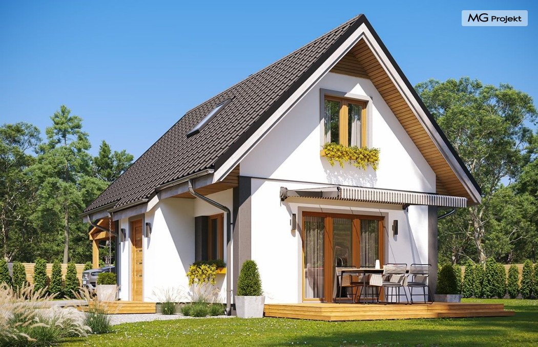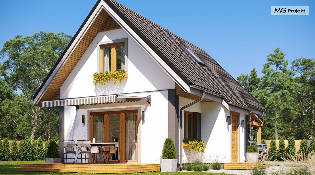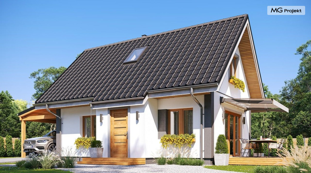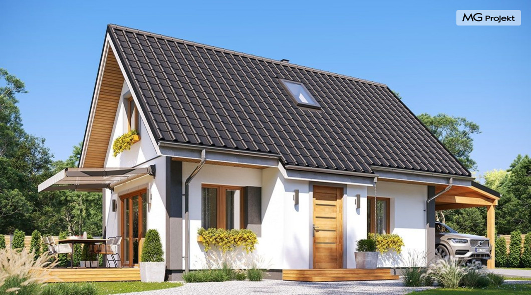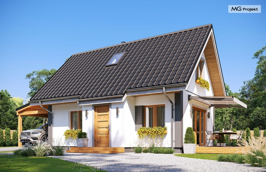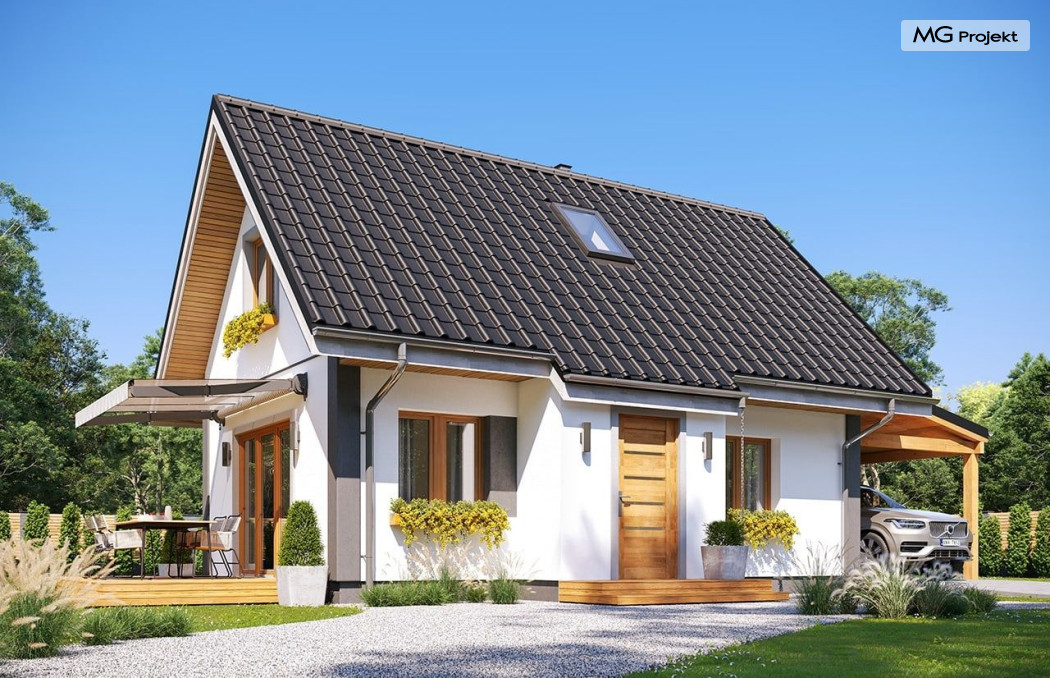 Koszt wzniesienia budynku wraz z pokryciem dachu i stolarką zewnętrzną (okna i drzwi). Bez instalacji, ocieplenia i robót wykończeniowych.