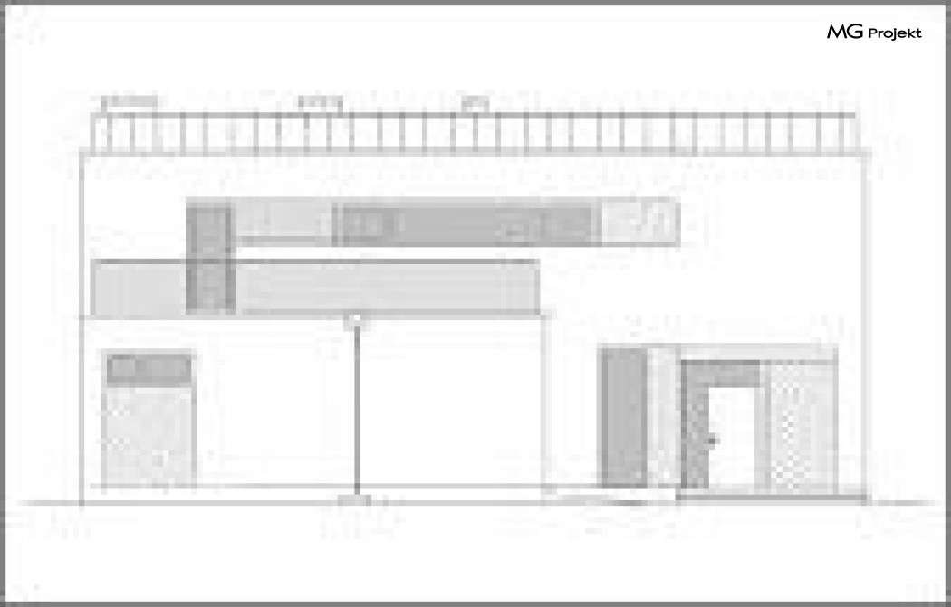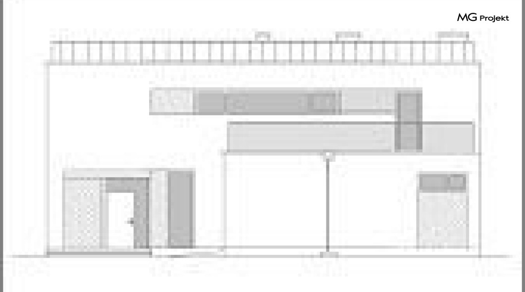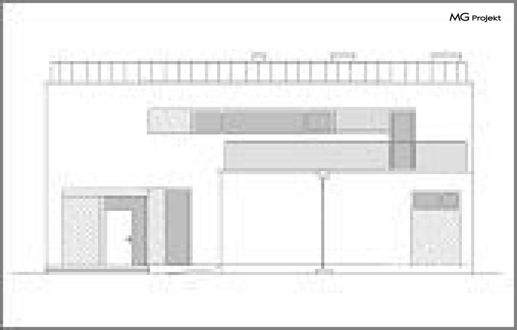 Wariant z dachem dwuspadowym pogrążonym , większą piwnicą i garażem .
