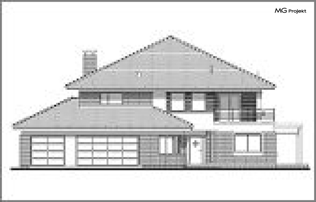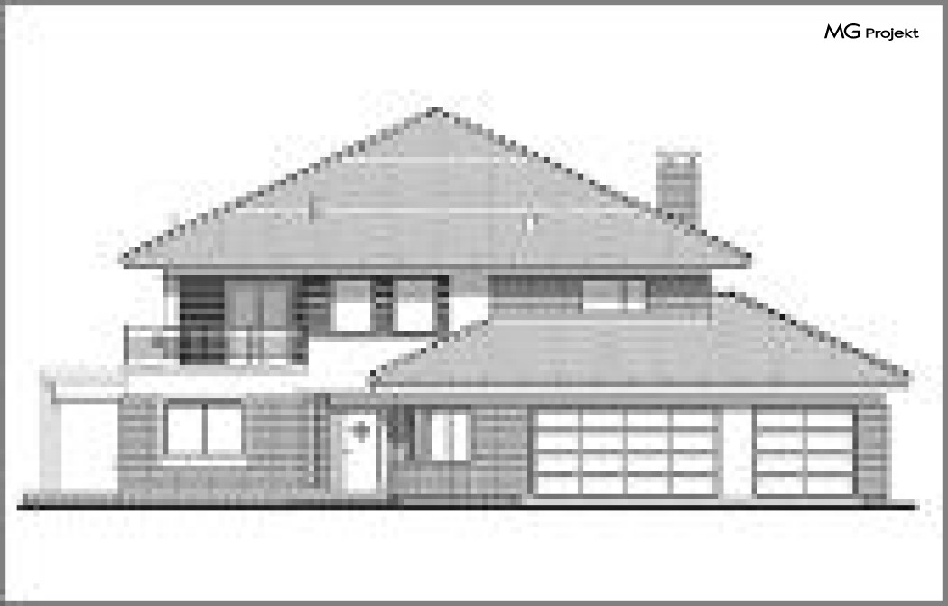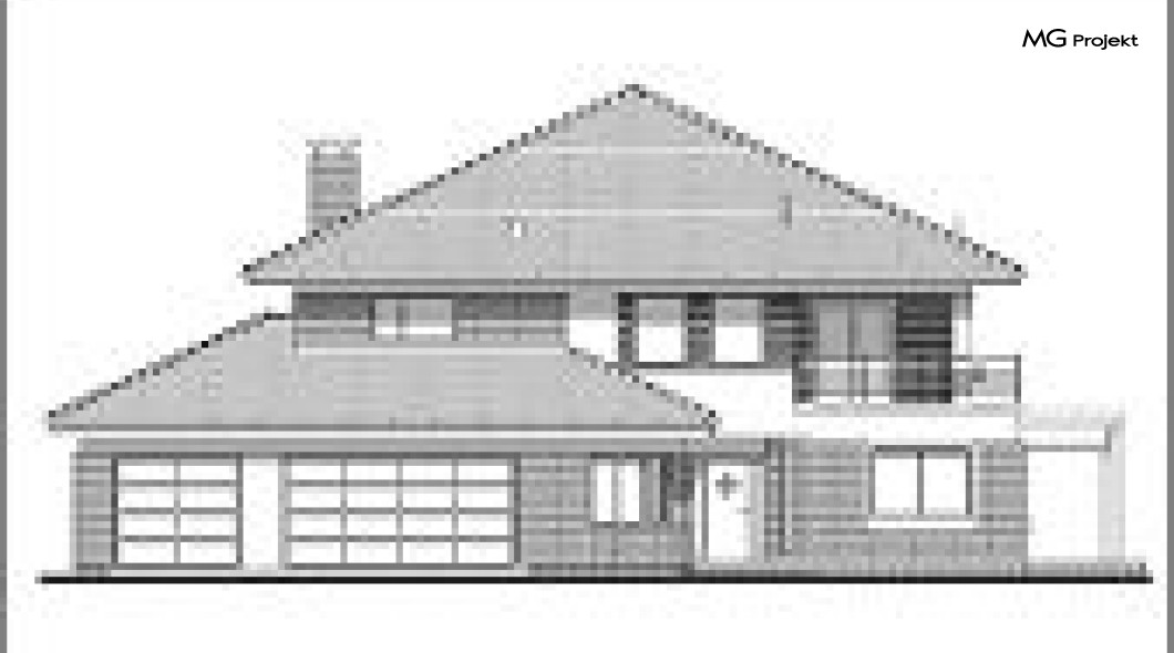 Wariant projektu z powiększonym garażem i spiżarnią, zmiana WC oraz zamiana gabinetu na garderobę.
