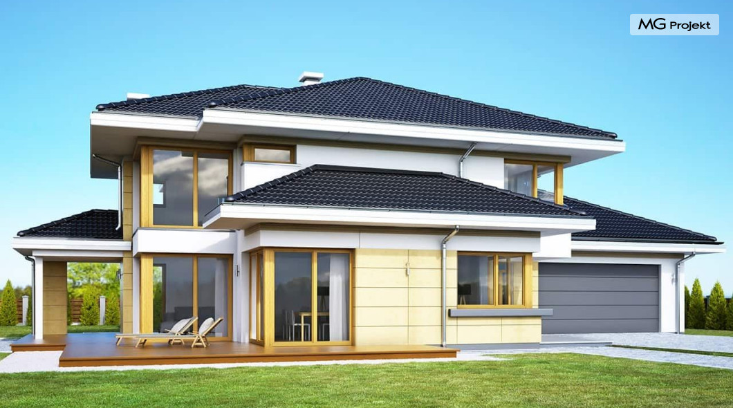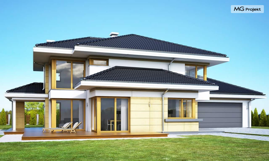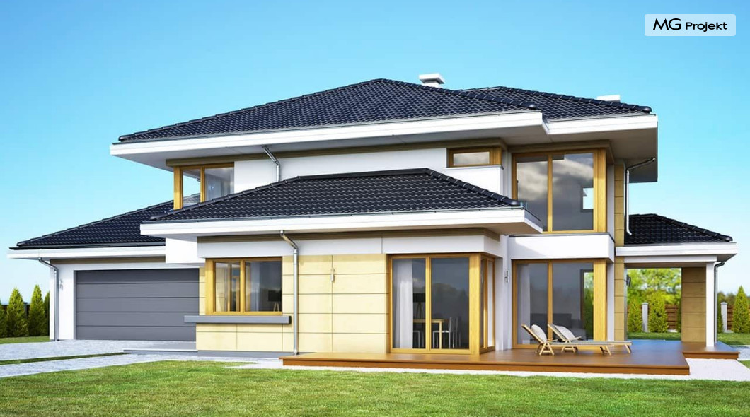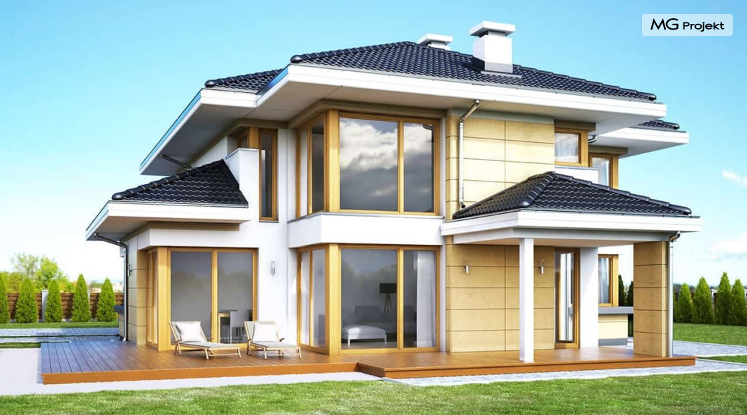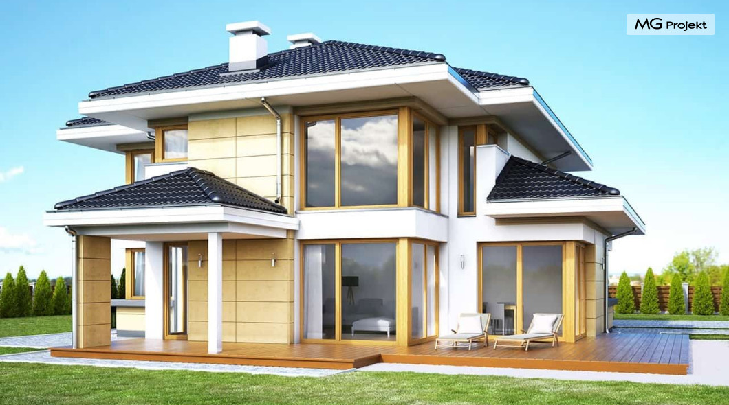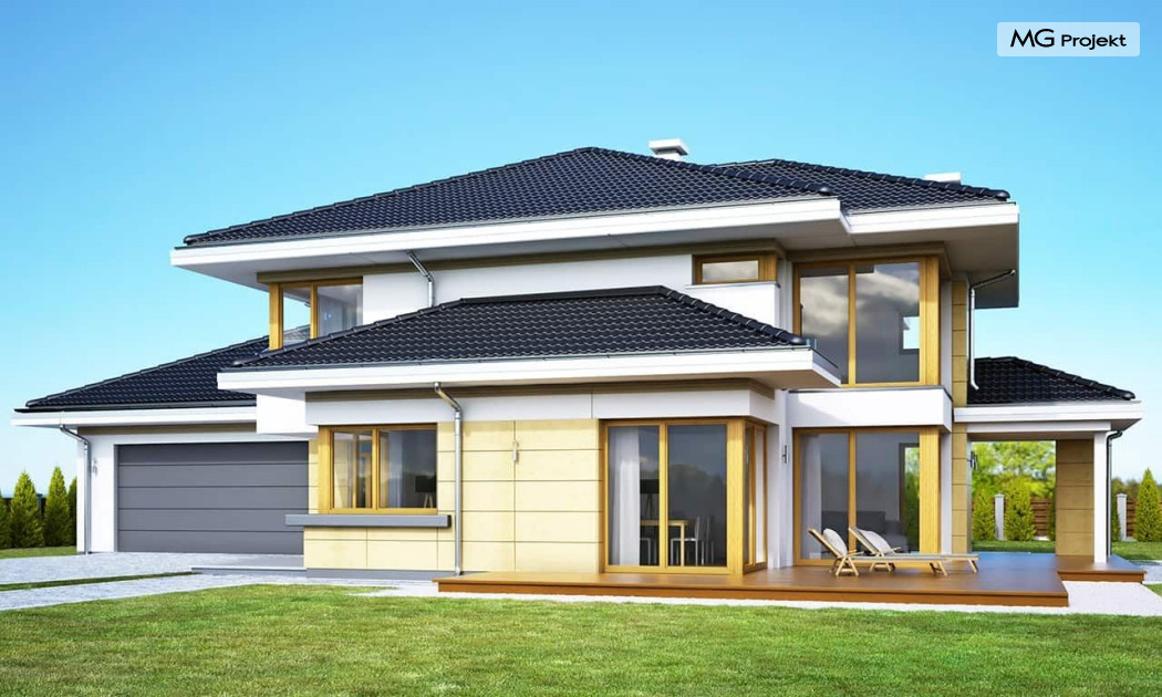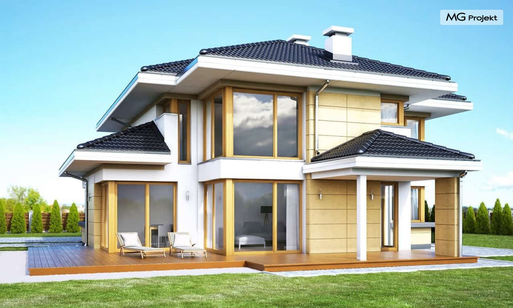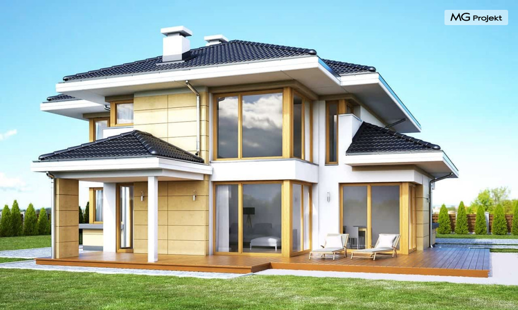 Koszt wzniesienia budynku wraz z pokryciem dachu i stolarką zewnętrzną (okna i drzwi). Bez instalacji, ocieplenia i robót wykończeniowych.