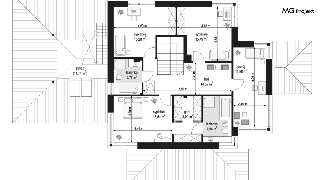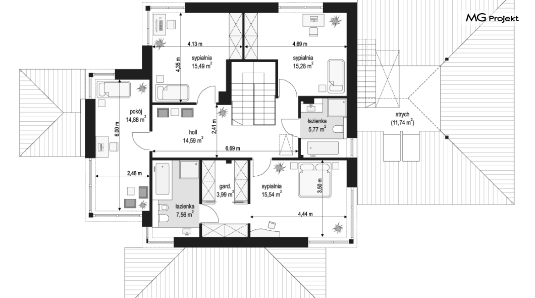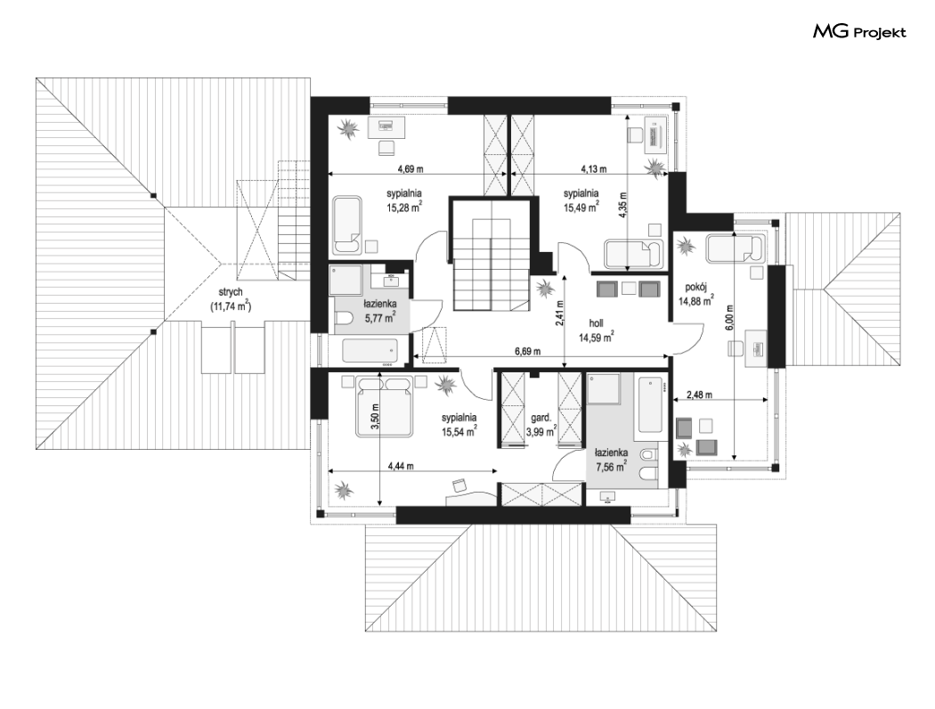 Zapoznaj się ze szczegółowymi rysunkami rzutów kondygnacji w PDF dla tego projektu.