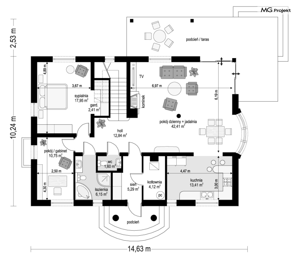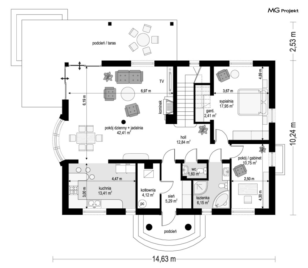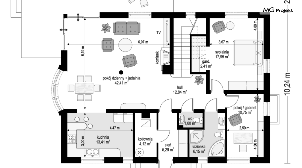 Obejmuje koszt wszystkich robót stanu surowego, wykonania instalacji wewnętrznych oraz robót wykończeniowych.