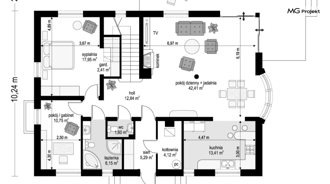 Łączna powierzchnia tzw. pomieszczeń użytkowych. Przede wszystkim nie zalicza się do niej powierzchni garażu, nieużytkowego strychu, piwnicy, kotłowni.