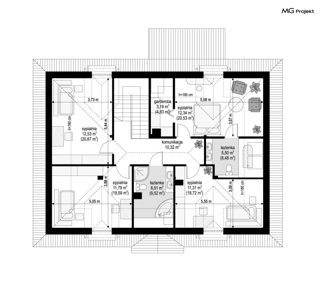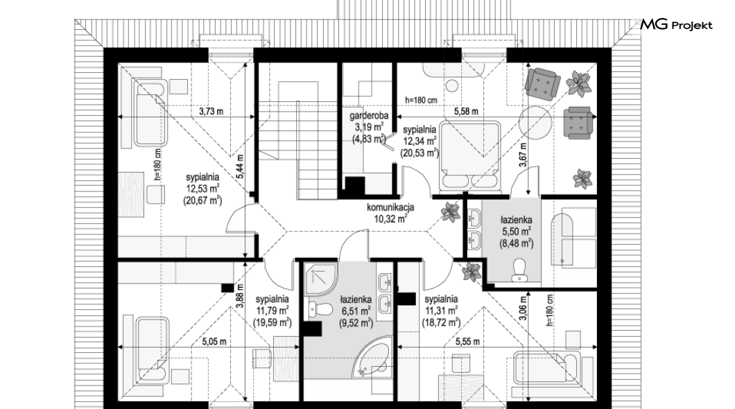 Zapoznaj się ze szczegółowymi rysunkami rzutów kondygnacji w PDF dla tego projektu.