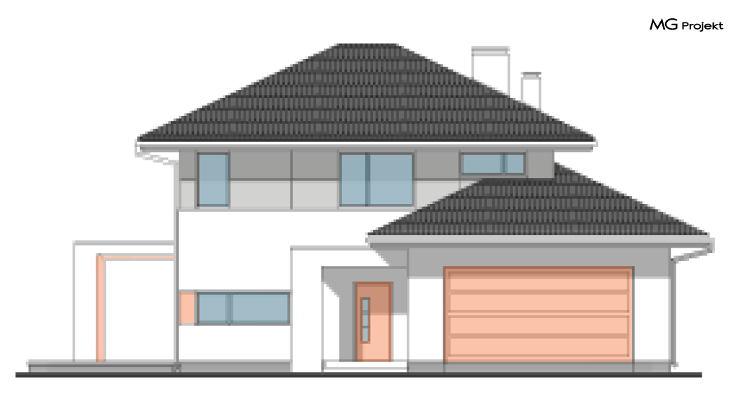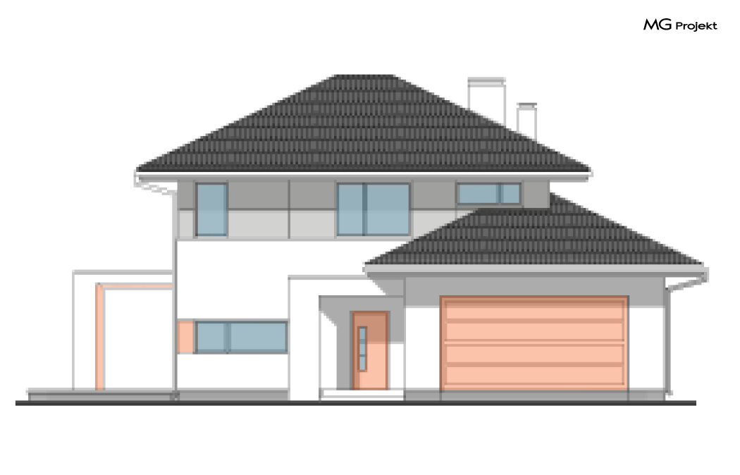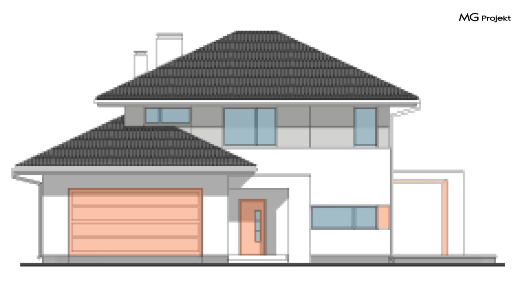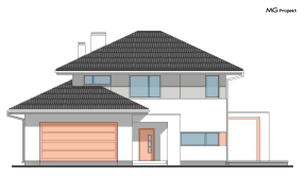 Wariant domku Modena D w wersji z innym układem pomieszczeń na piętrze + okna od frontu