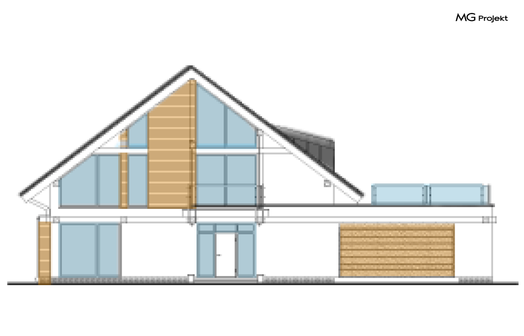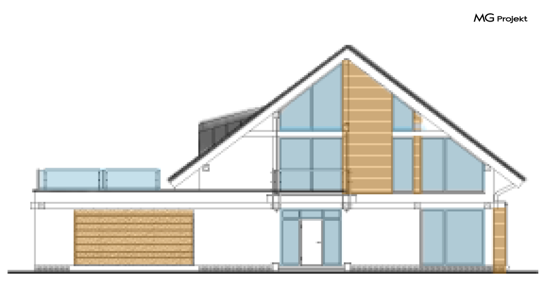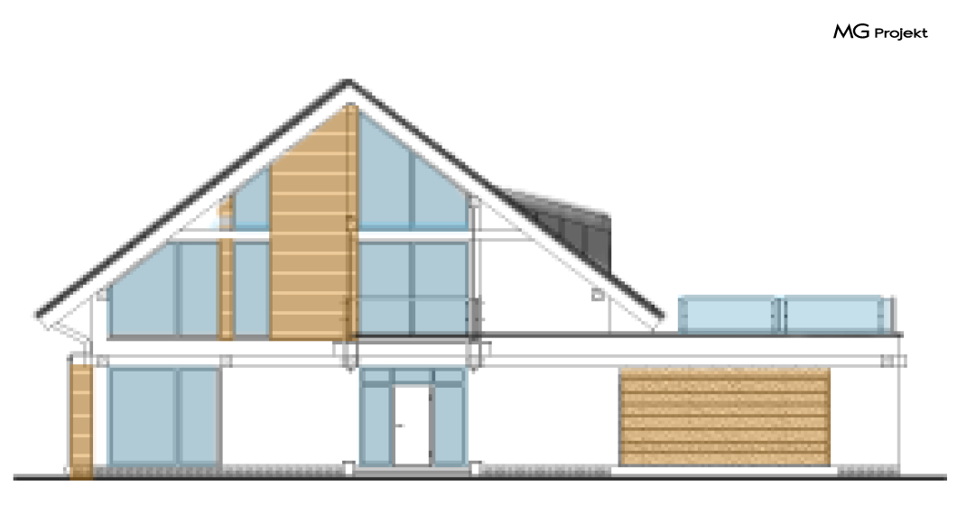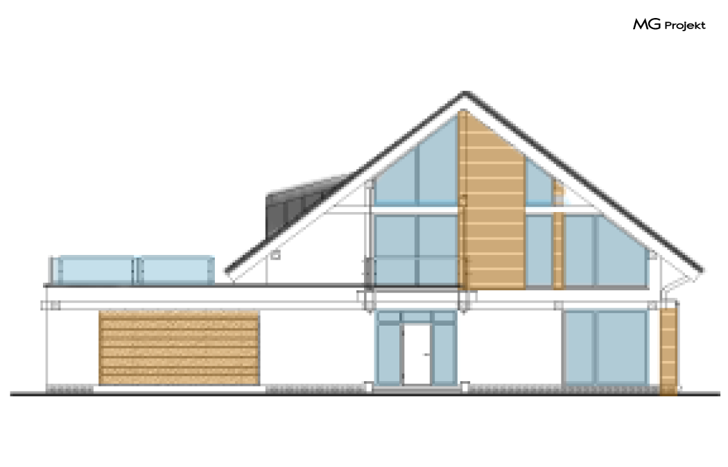 Wariant C projektu z powiększonym garażem, zmianą funkcji i rozmieszczenia pomieszczeń, zmianą kąta nachylenia dachu, dostosowany do NF40, pompa ciepła, likwidacja kominów i kominka