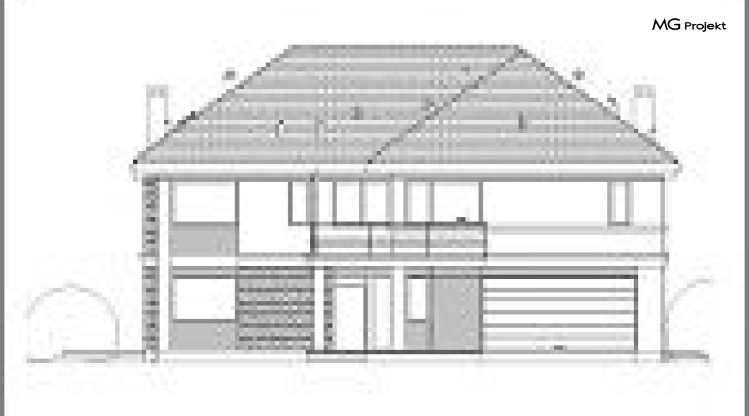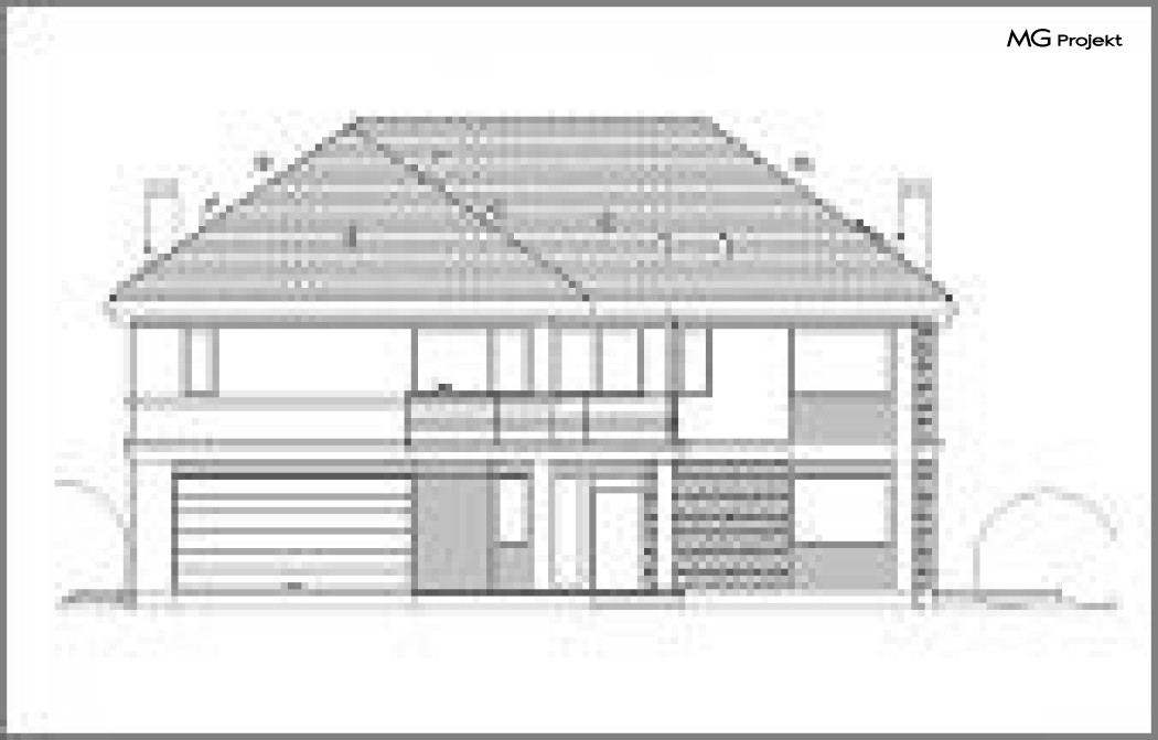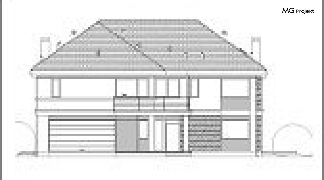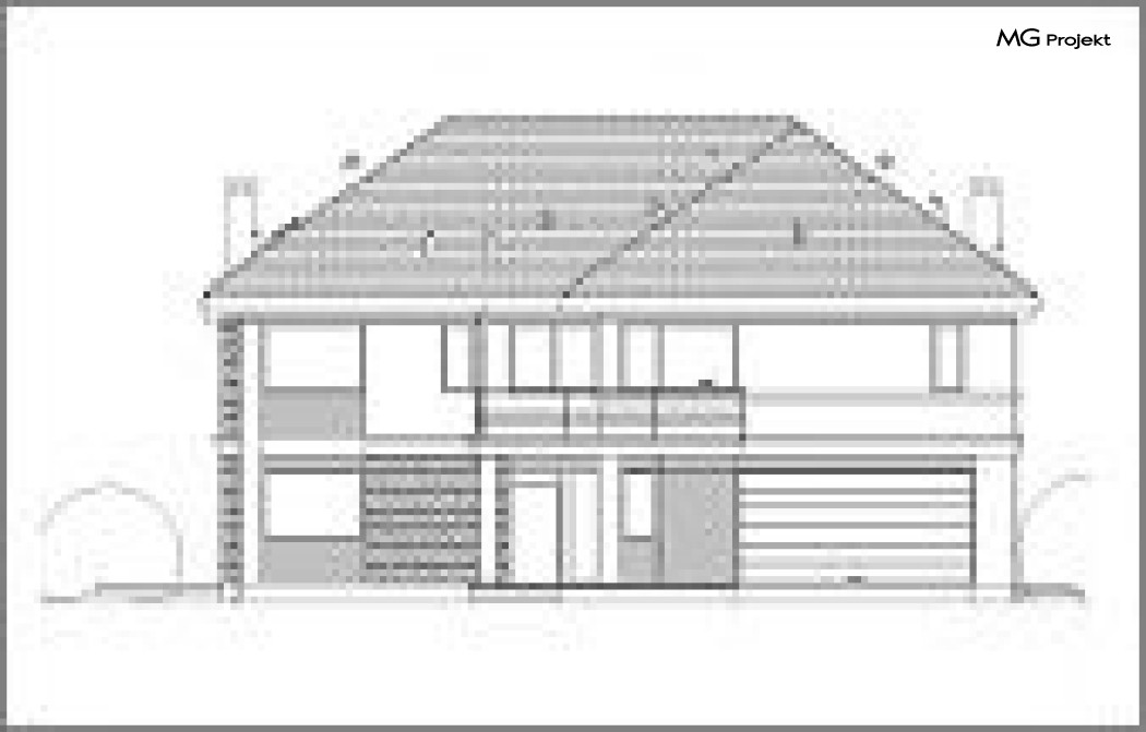 Wariant projektu ze zmienionym stropem nad parterem na monolit, przeniesioną kuchnią na część frontową, wydłużonym garażem o 25cm, zmiana funkcji pomieszczeń na parterze, likwidacja antresoli i doprojektowanie w to miejsce pokoju i łazienki, likwidacja schodów na strych, likwidacja okien połaciowych na strychu, zmiana stolarki okiennej(niższe okna).