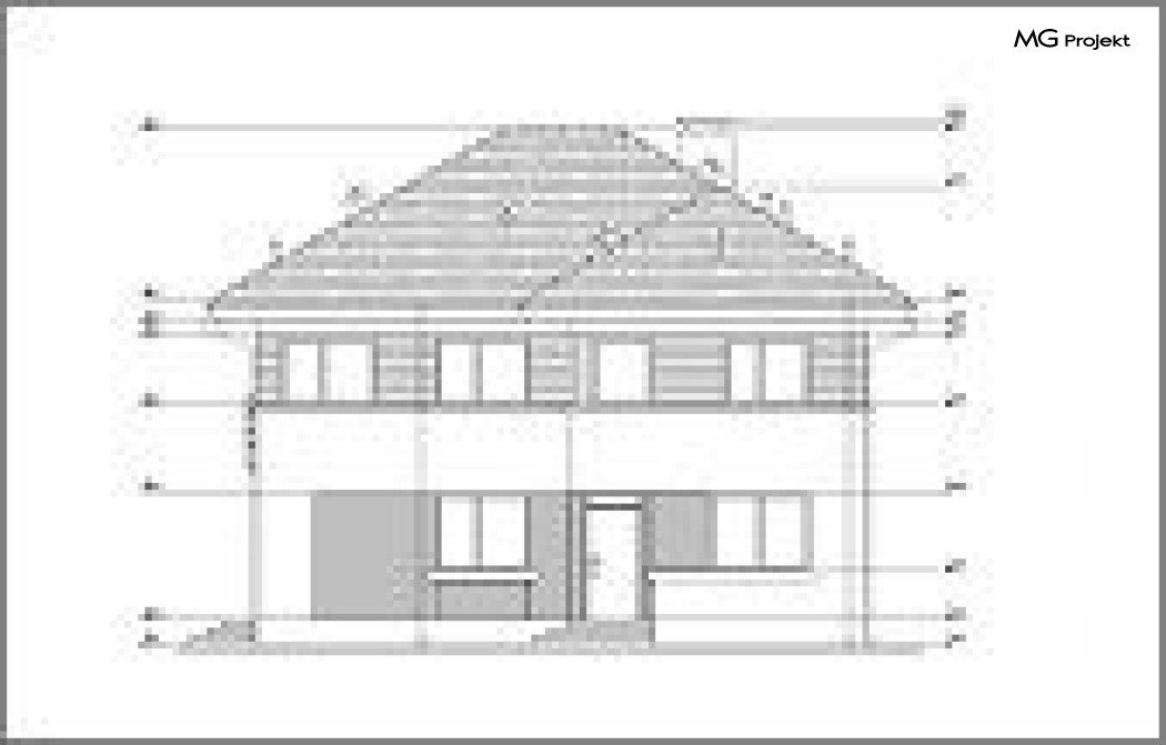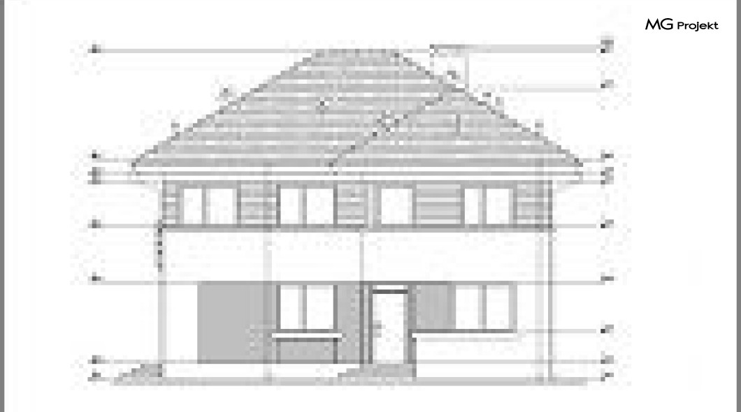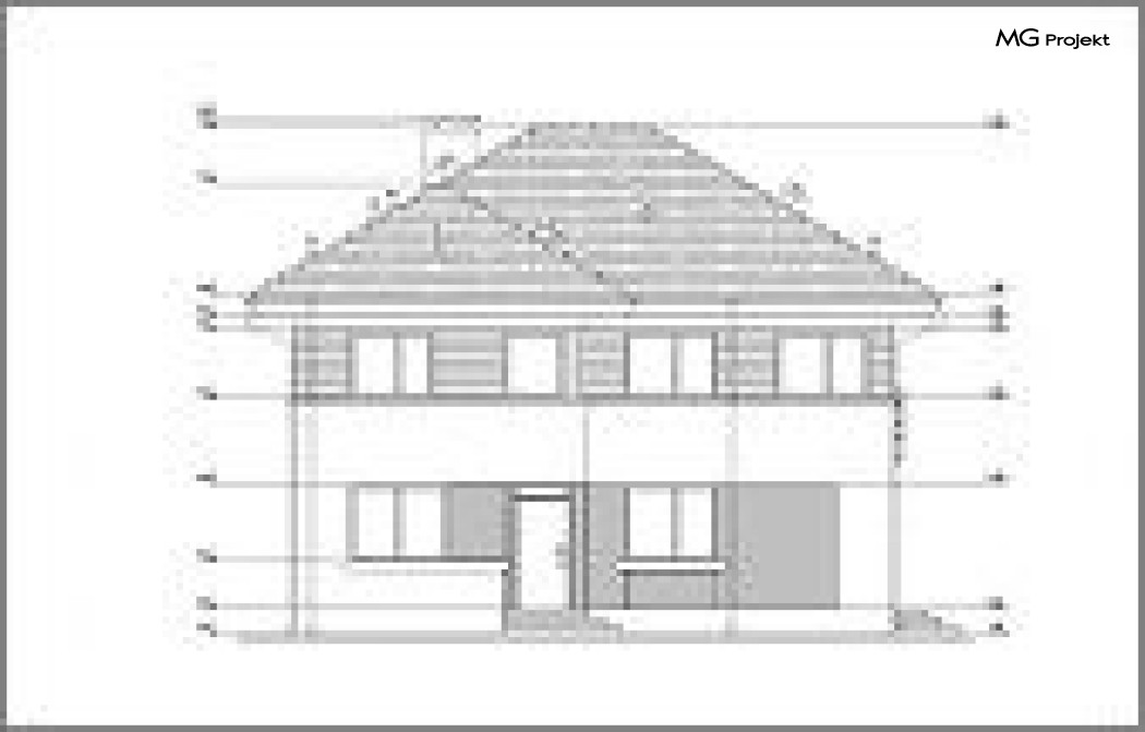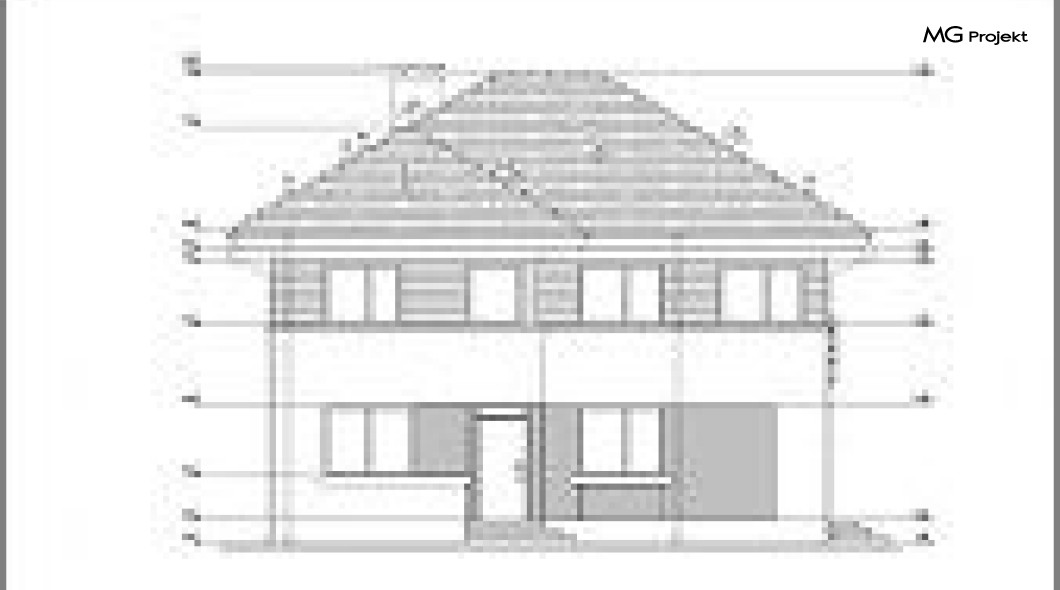 Wariant projektu ze skróconymi okapami, zmienionymi drzwiami balkonowymi na okna, kąt nachylenia dachu 30 stopni, podwyższenie podmurówki o 20 cm.