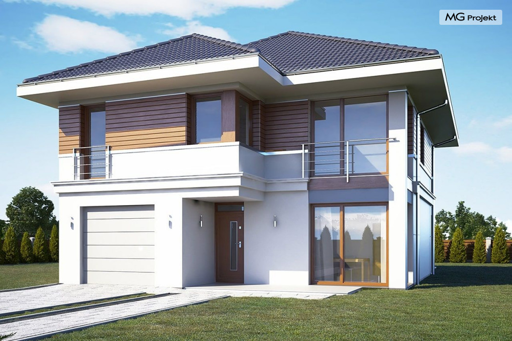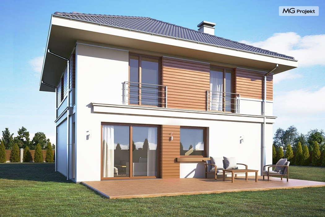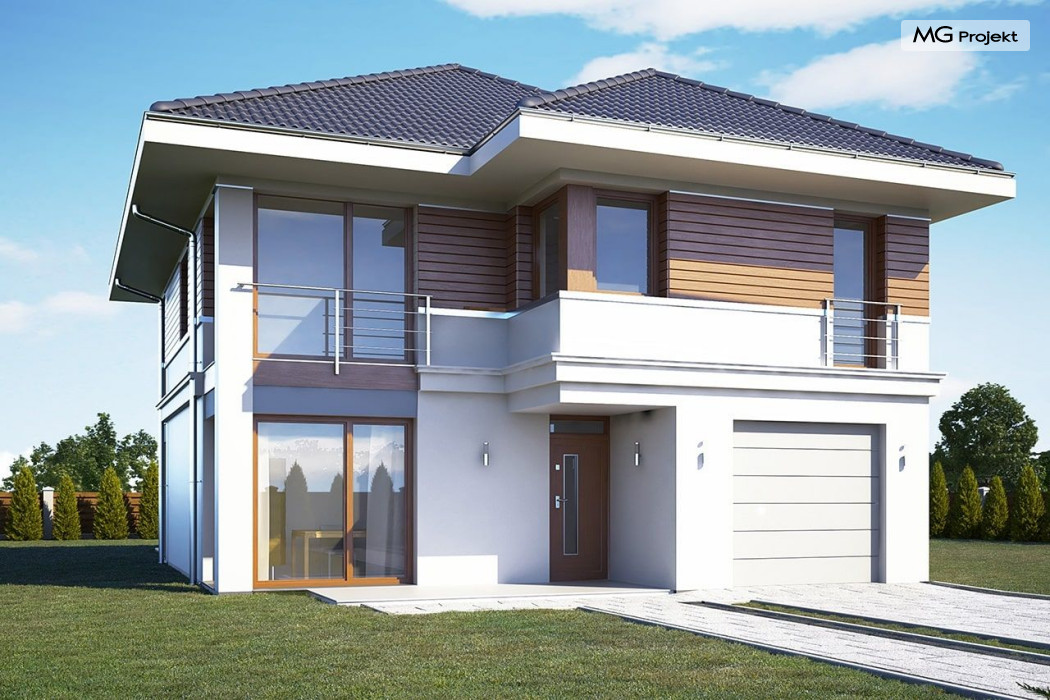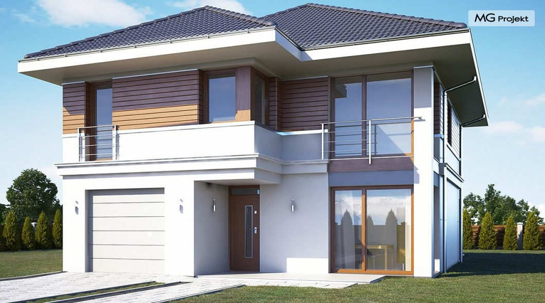 Koszt wzniesienia budynku wraz z pokryciem dachu i stolarką zewnętrzną (okna i drzwi). Bez instalacji, ocieplenia i robót wykończeniowych.